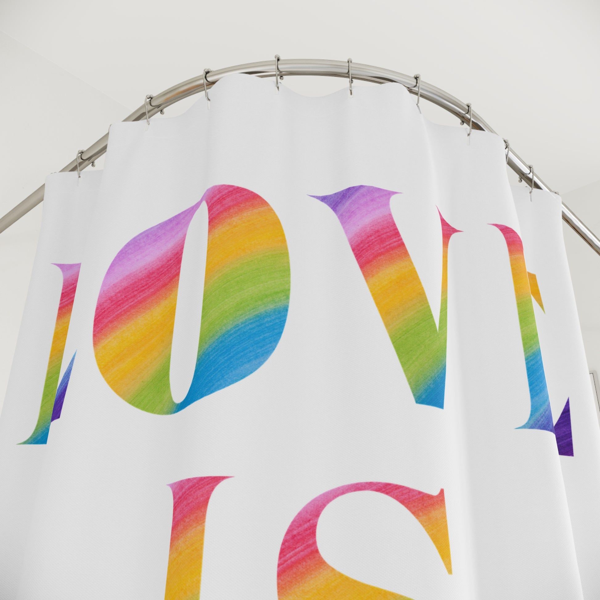 Realza la decoración de tu baño con nuestra cortina de ducha “Rainbow Love Is Love”. Fabricada con poliéster de alta calidad, esta cortina no solo sirve como lienzo para tus diseños únicos, sino que también garantiza una durabilidad duradera. Es un complemento elegante y vibrante para cualquier baño, lo que la convierte en una manera perfecta de expresar tu individualidad.