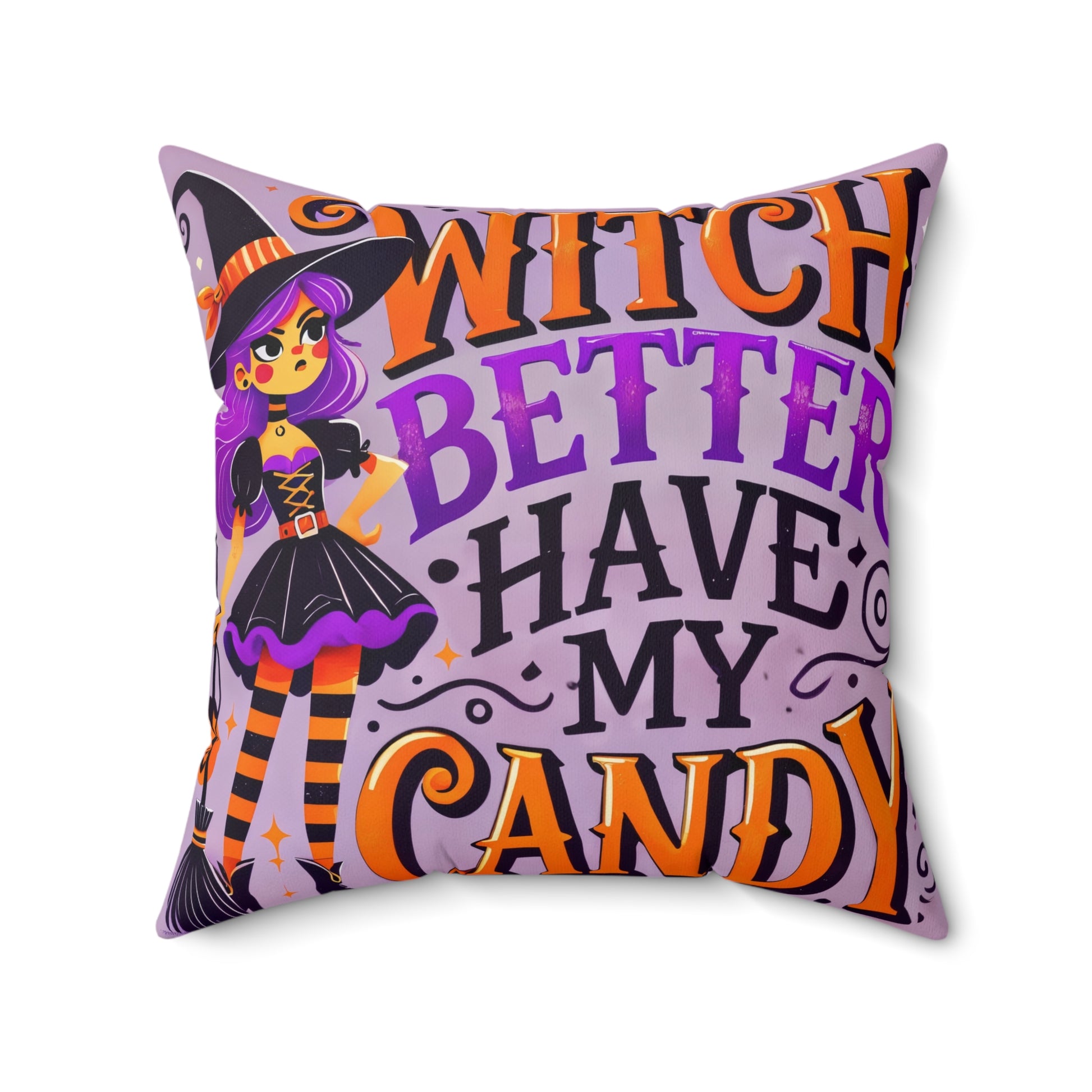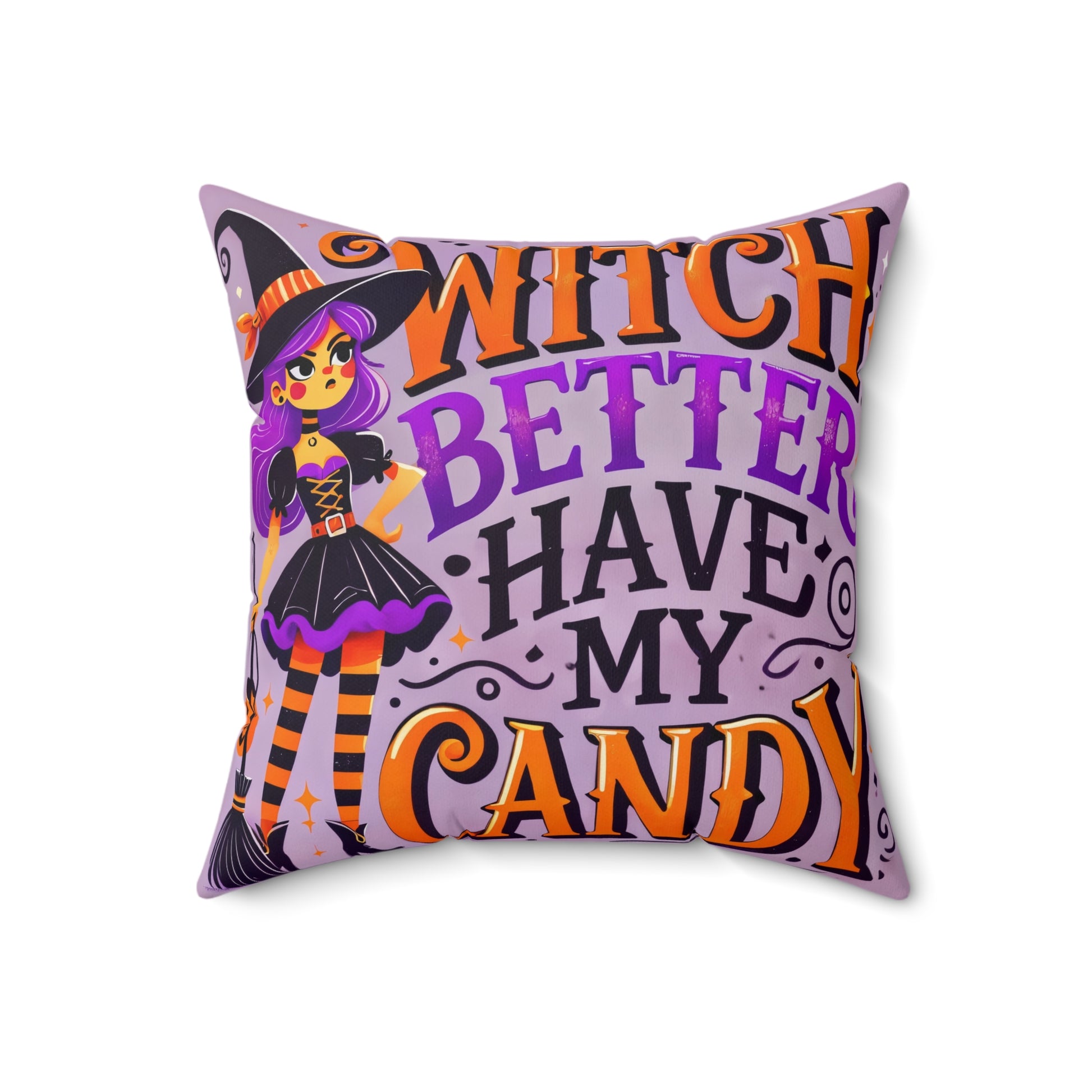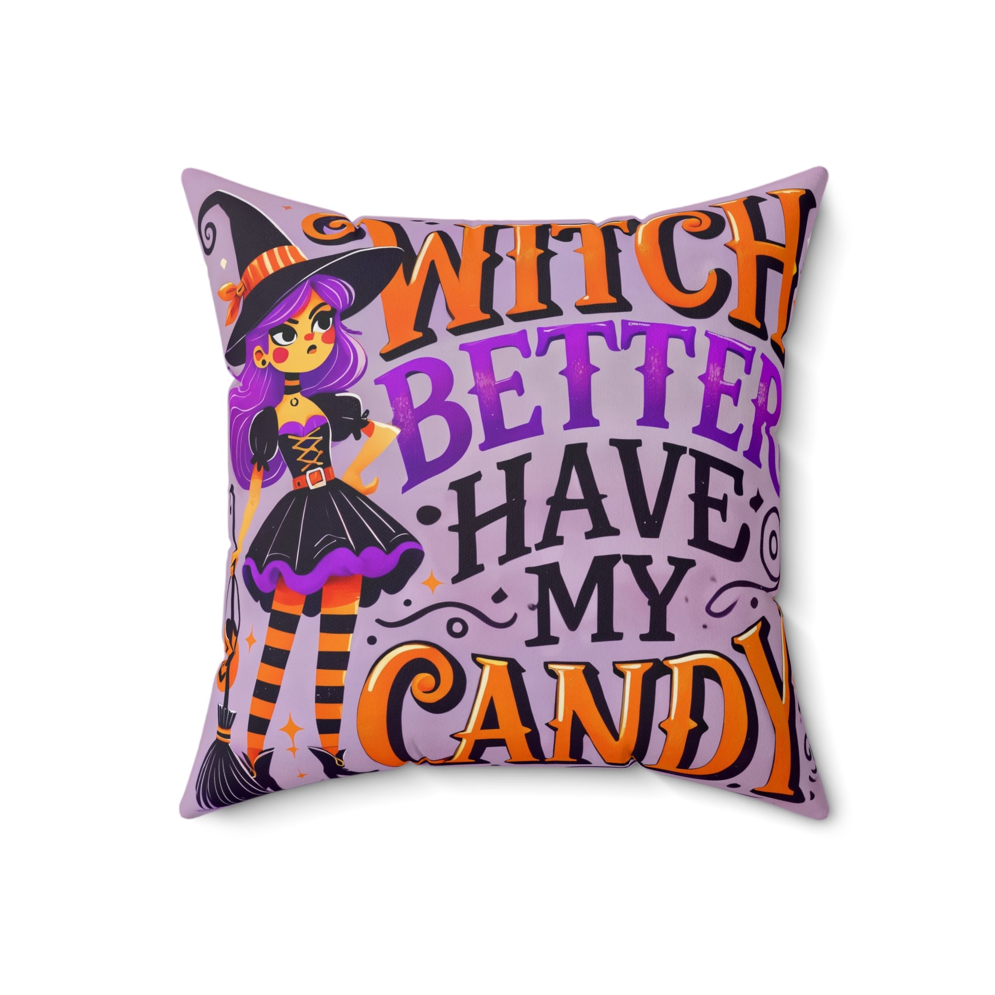 Sassy Witch “Witch Better Have My Candy” Throw Pillow – Fun Halloween Home Accent