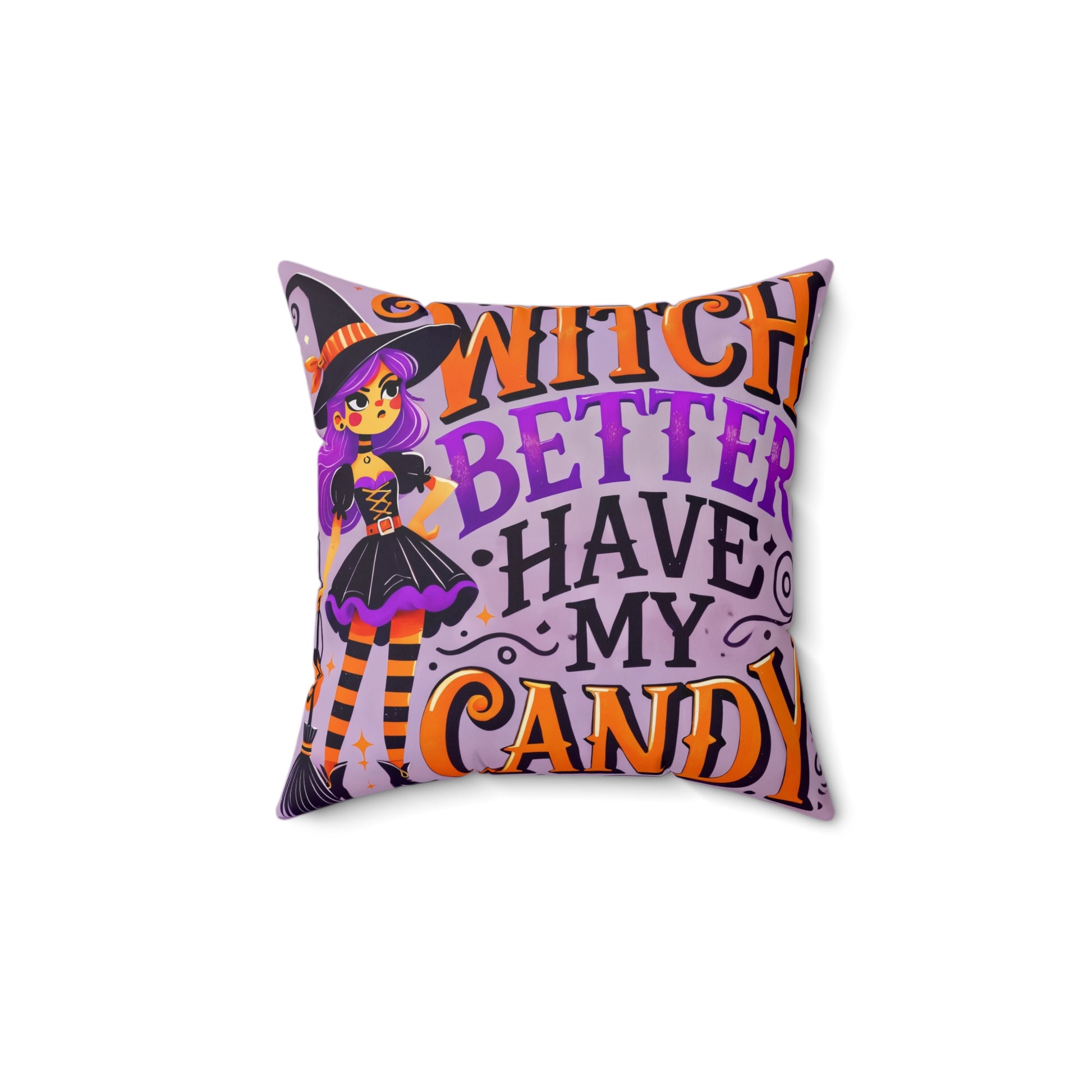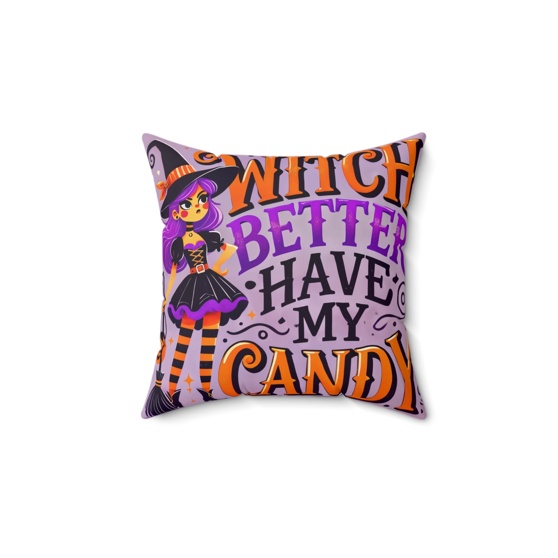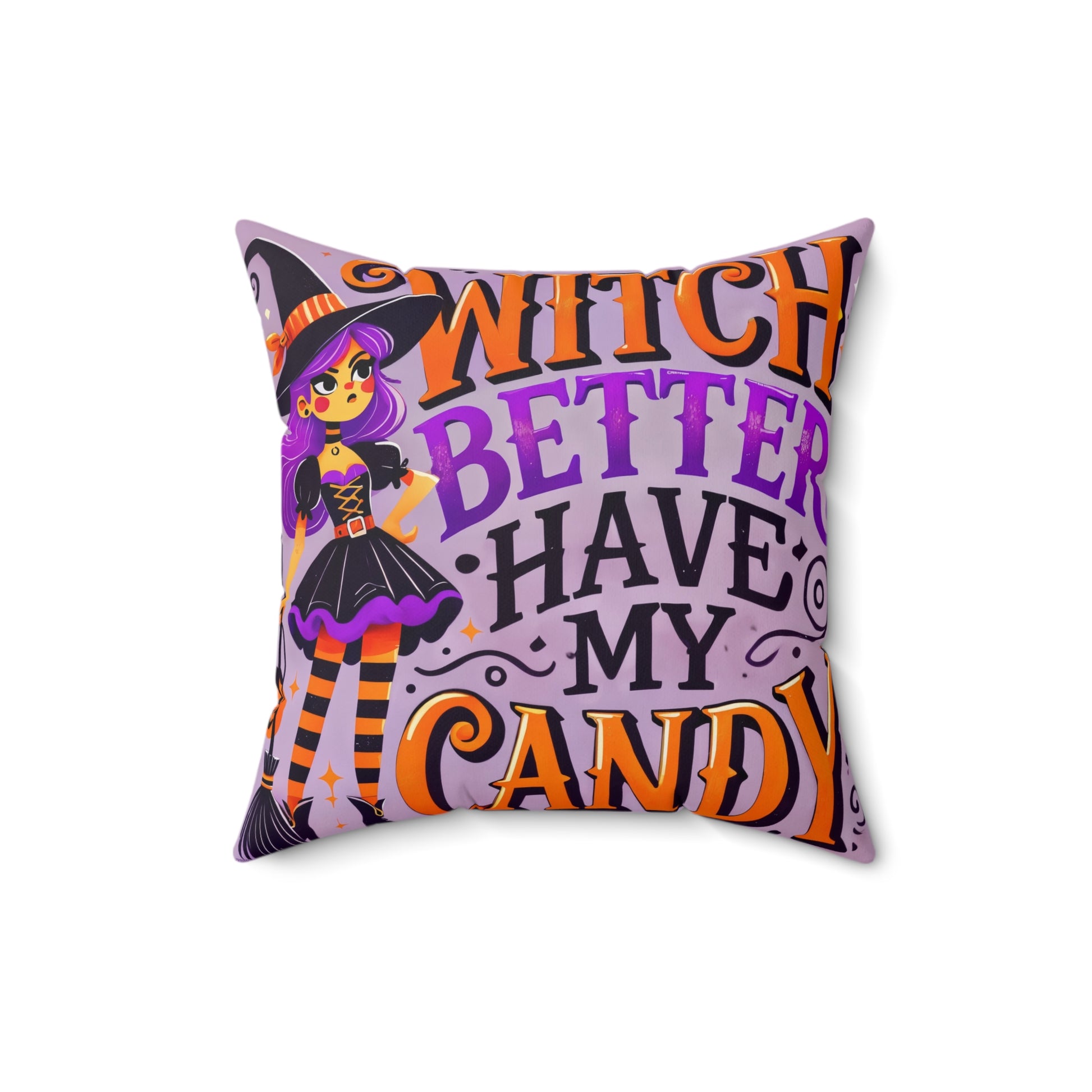 Sassy Witch “Witch Better Have My Candy” Throw Pillow – Fun Halloween Home Accent