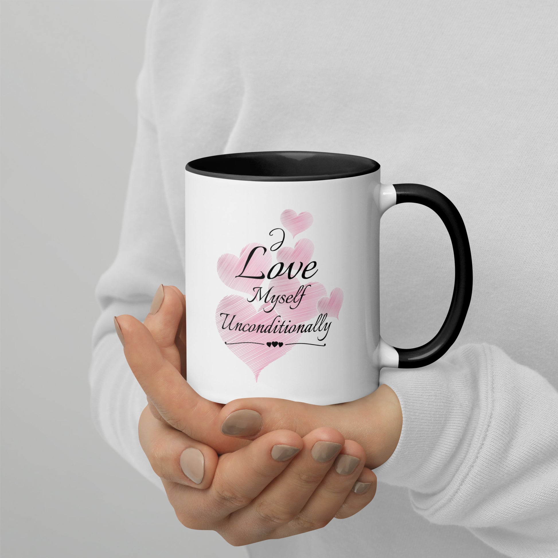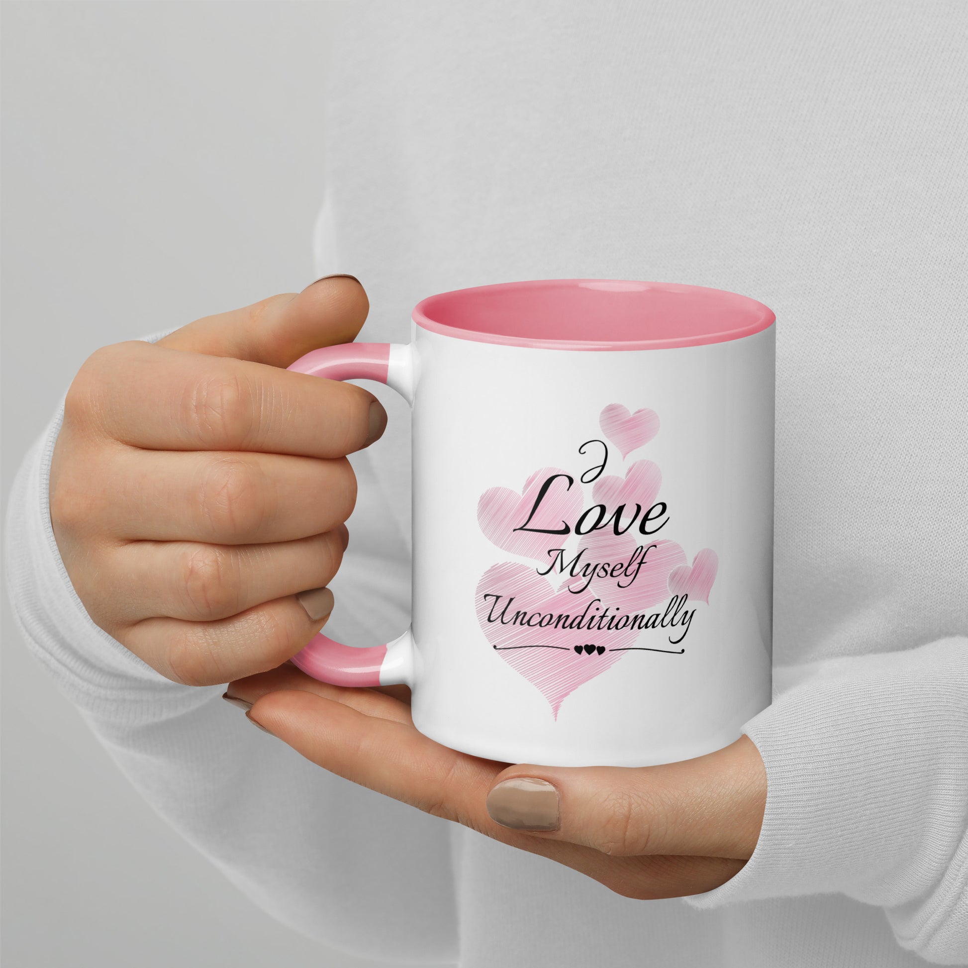 Mejora tu rutina diaria de café o té con nuestra taza de café “Self-Love Affirmation”. Esta taza de cerámica no solo cuenta con un hermoso diseño, sino que también presenta un mensaje empoderador: “Me amo incondicionalmente”. Es un recordatorio simple pero impactante para priorizar el amor propio todos los días. Con un borde, asa e interior coloridos, esta taza no solo agregará un toque de color a tu colección, sino que también infundirá positividad y autoestima a tus mañanas. Disfruta de tus bebidas favoritas con un toque de autoafirmación, cortesía de nuestra inspiradora taza de café.