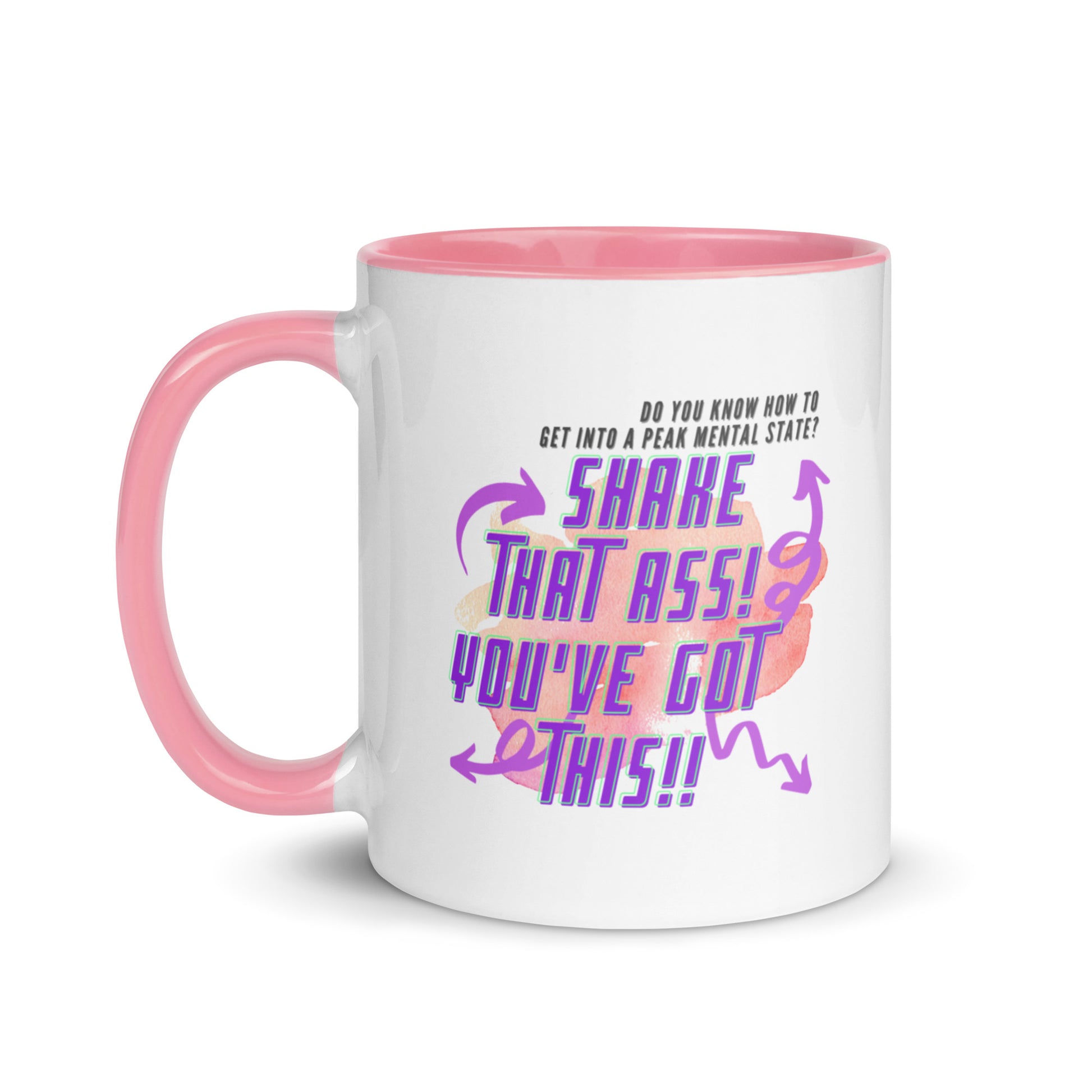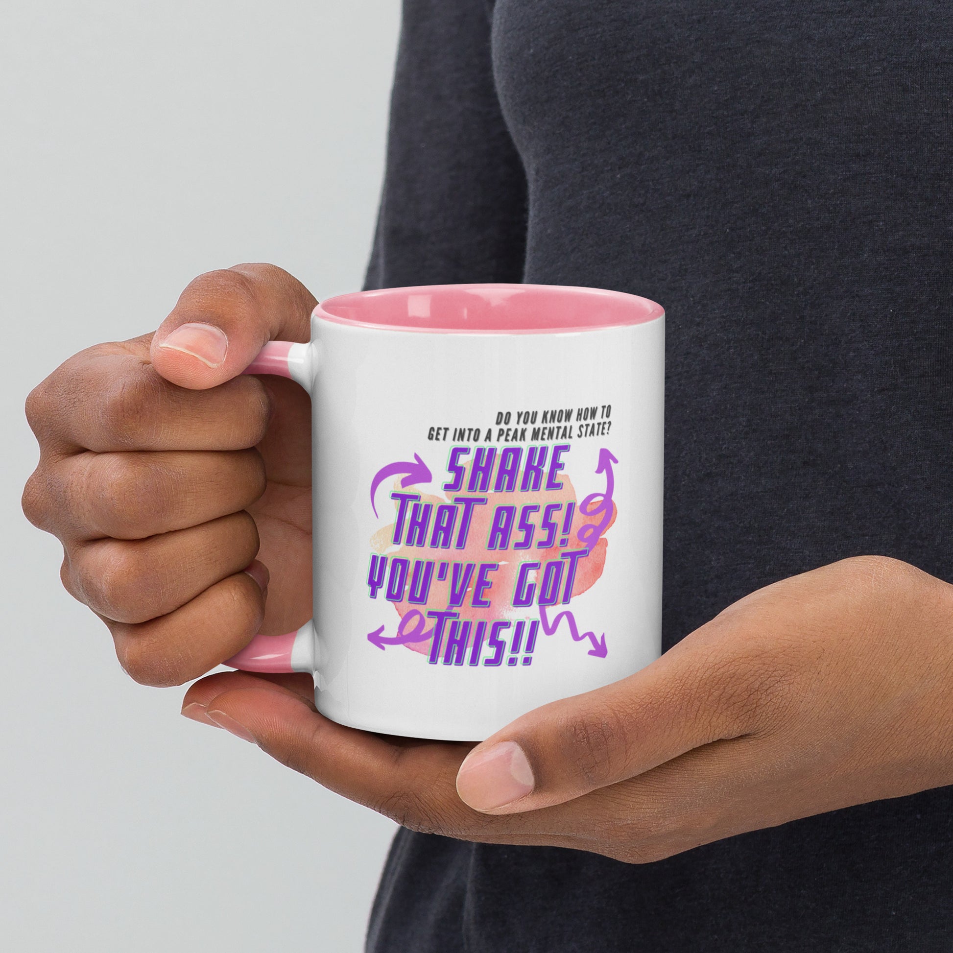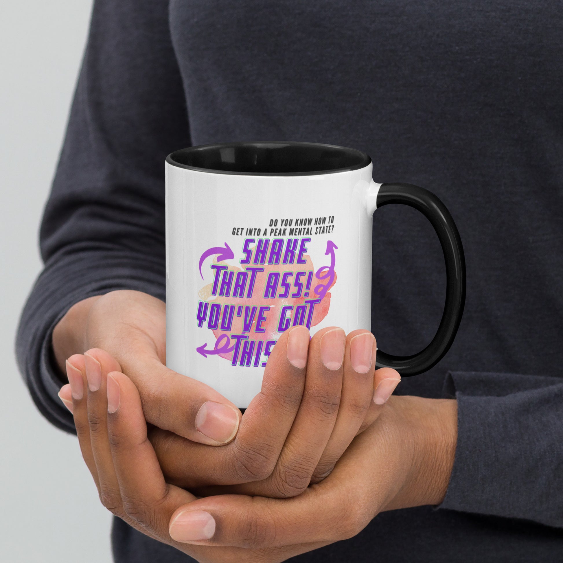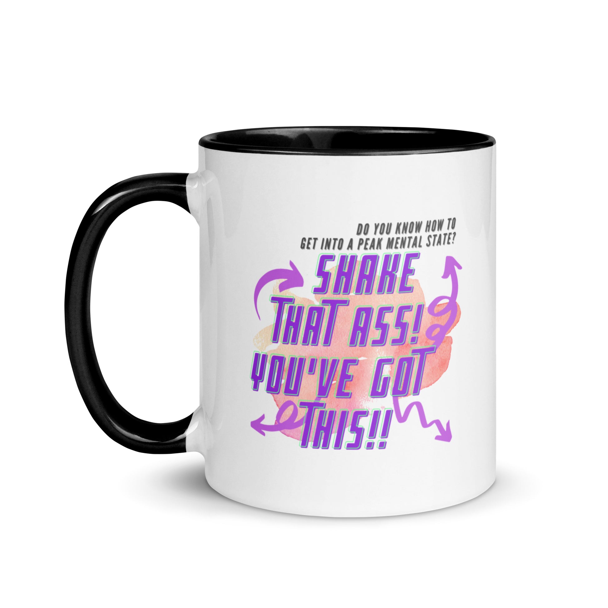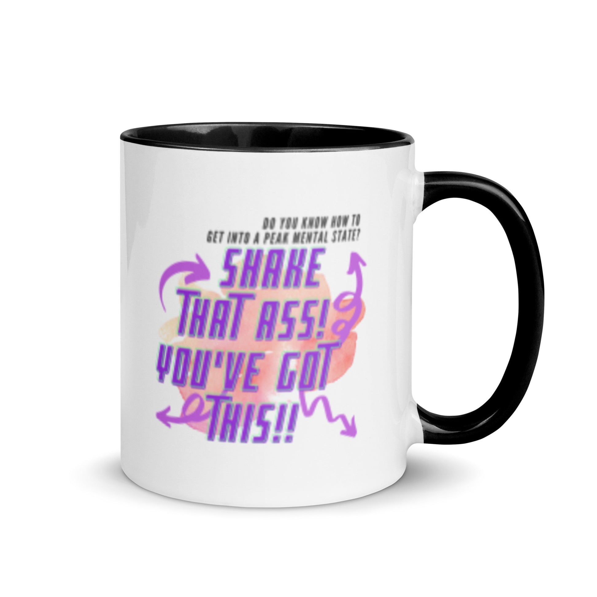 Dale energía a tu día con nuestra taza “Shake That Ass, Peak State”. Esta taza de cerámica no es solo para tomar café, sino que también es una fuente de motivación. Con un mensaje alentador, te recuerda que debes afrontar tu día con confianza.