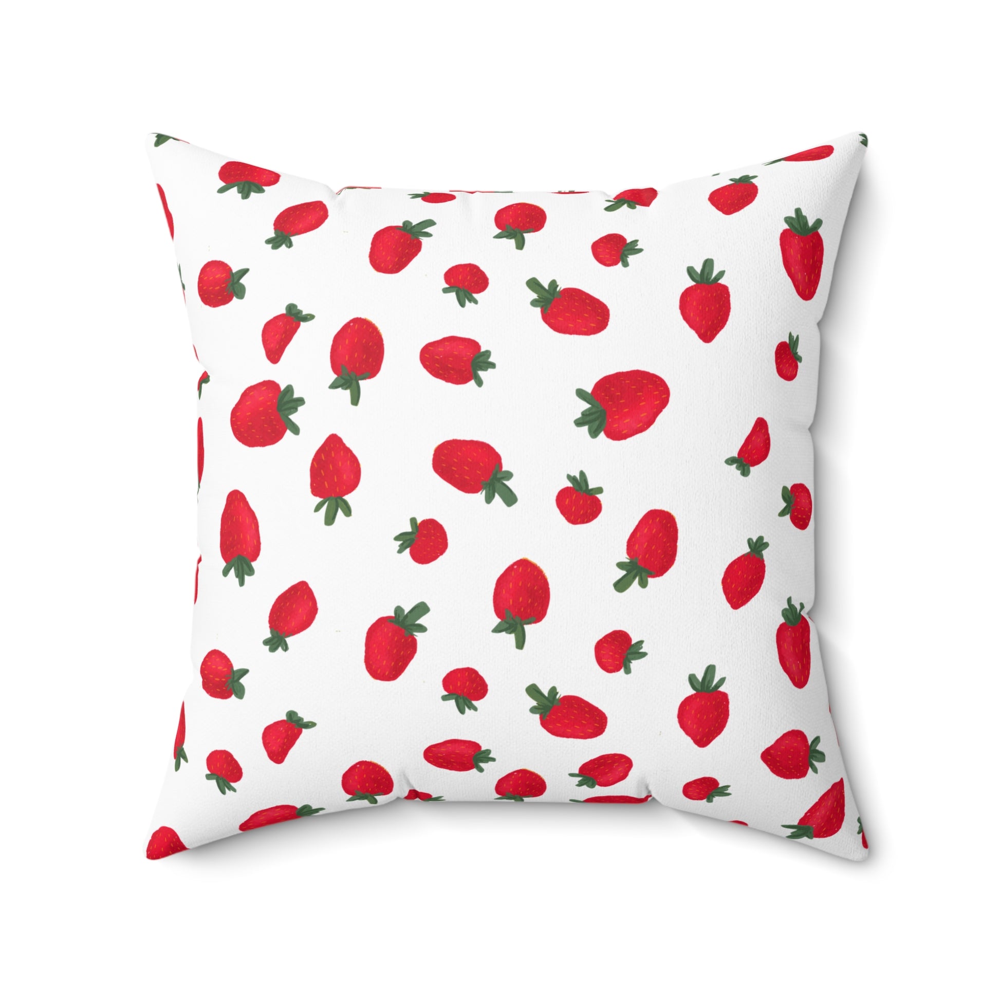 Presentamos nuestro cojín decorativo con estampado de fresas: el detalle más dulce para cualquier habitación. Adornado con fresas rojas vibrantes sobre un fondo blanco nítido, es una expresión de estilo y comodidad. Ideal para cualquier habitación, este cojín cuadrado de diseño agrega estilo y comodidad a tu decoración.