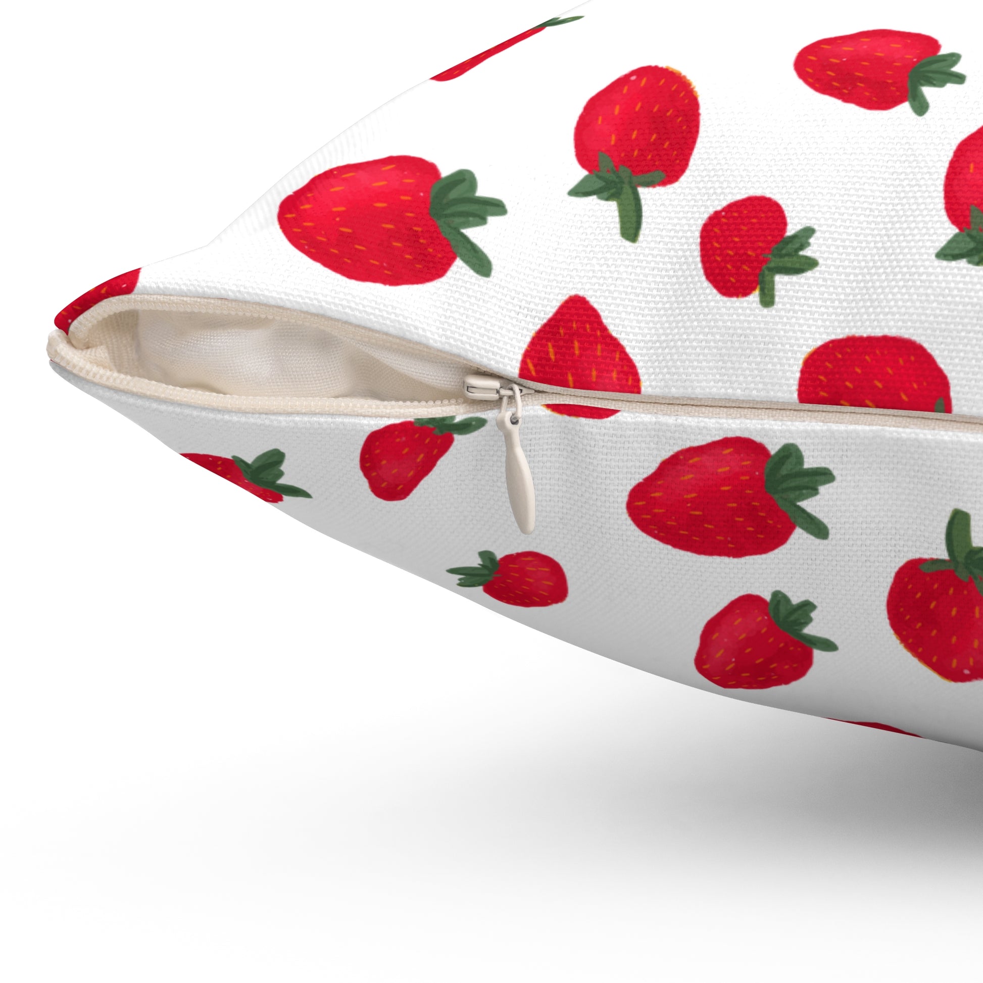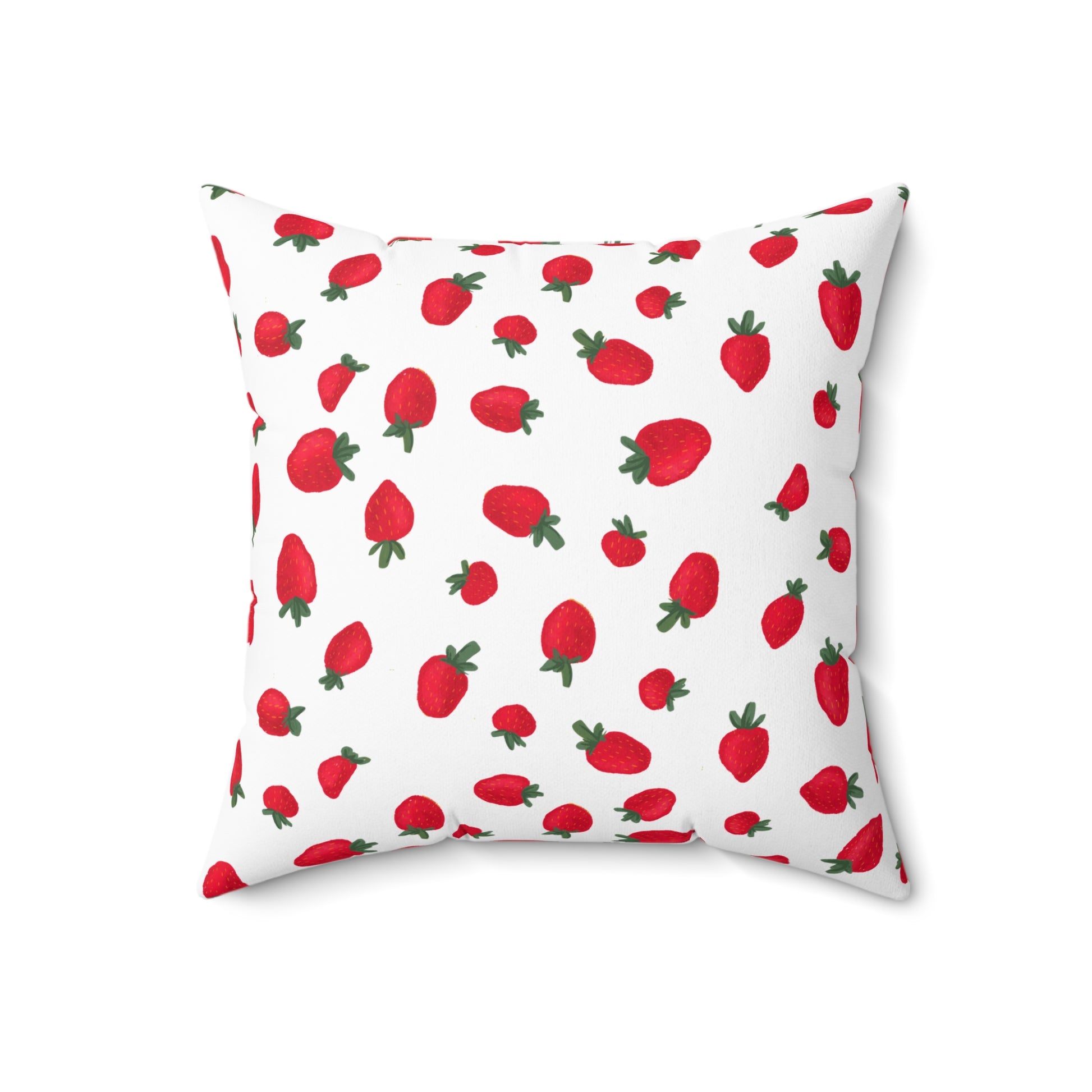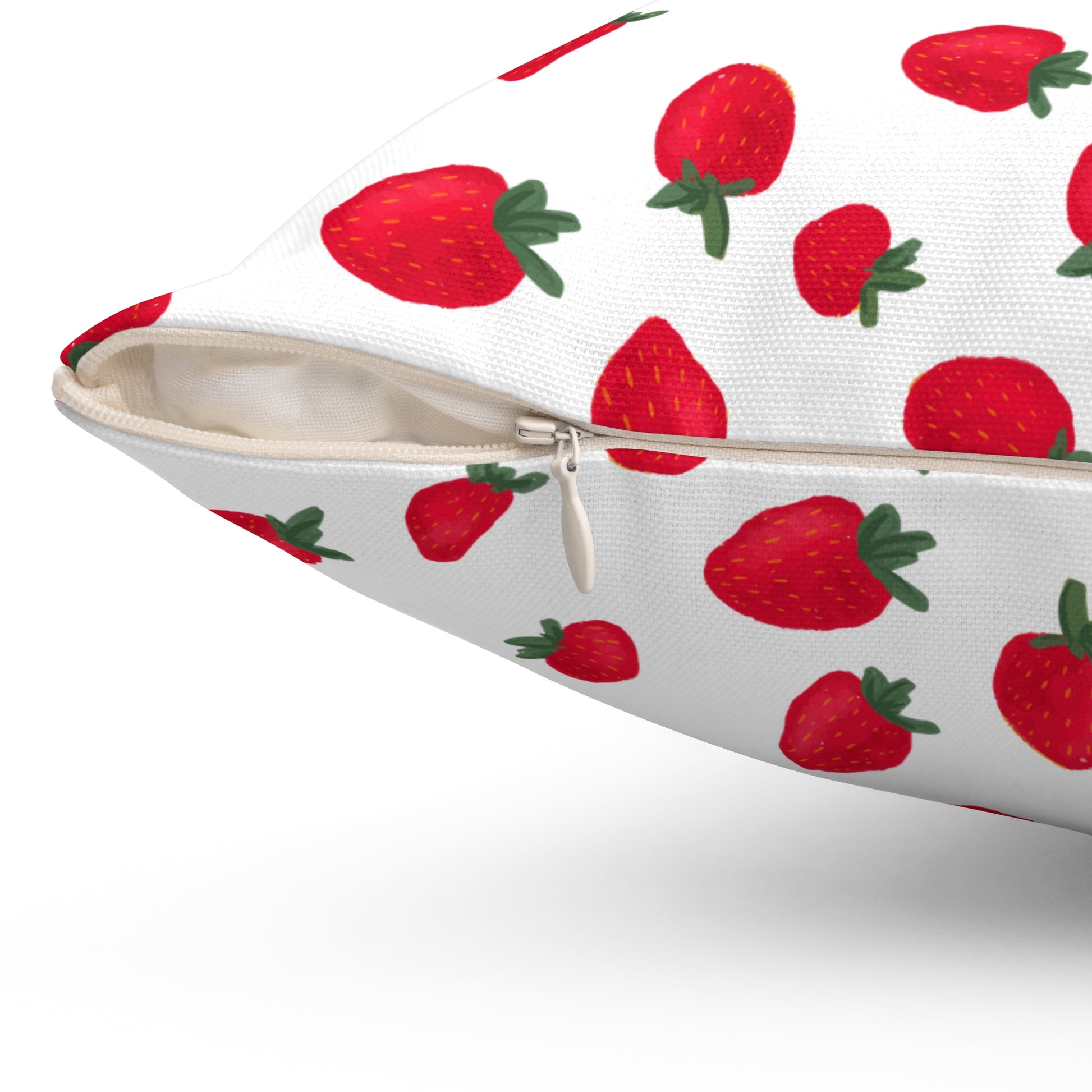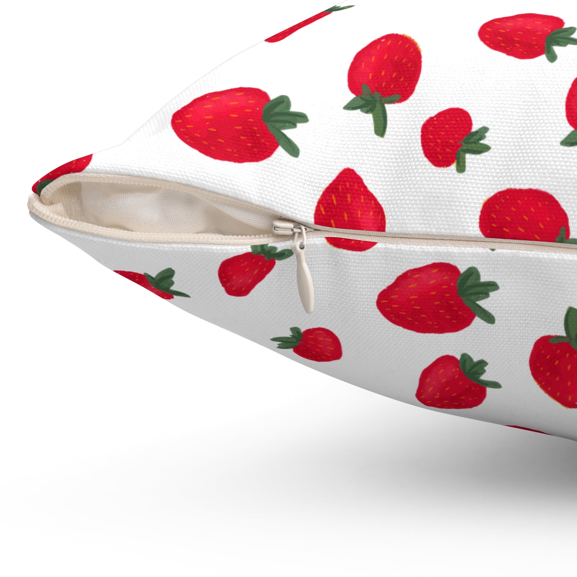 Cojín con estampado de fresas, decoración de habitación, cojín de diseño cuadrado rojo y blanco