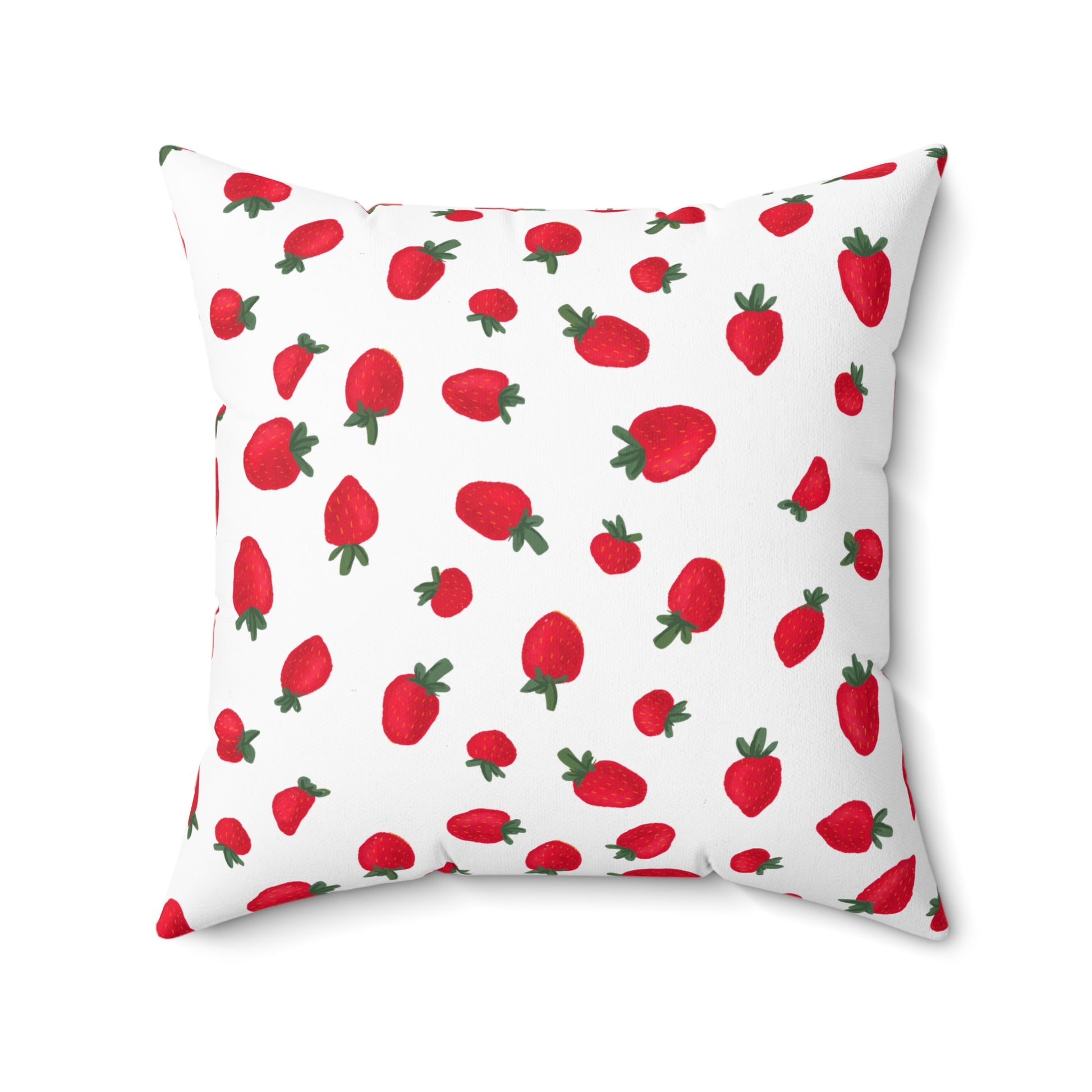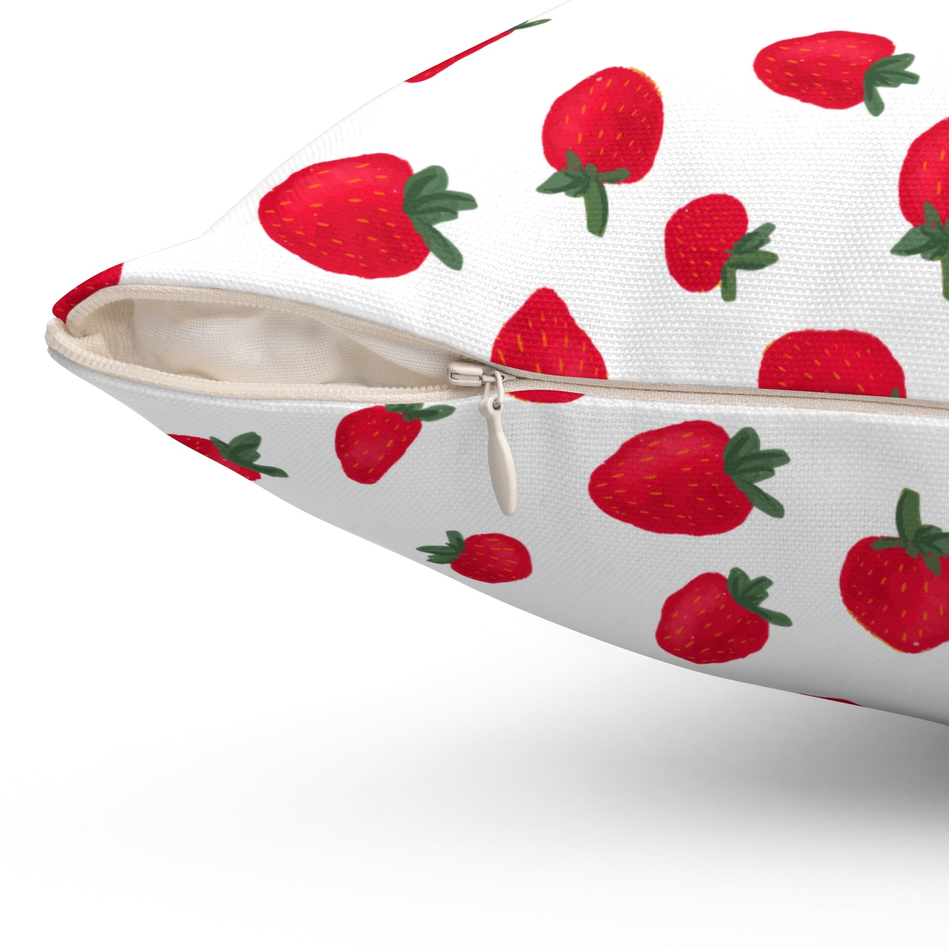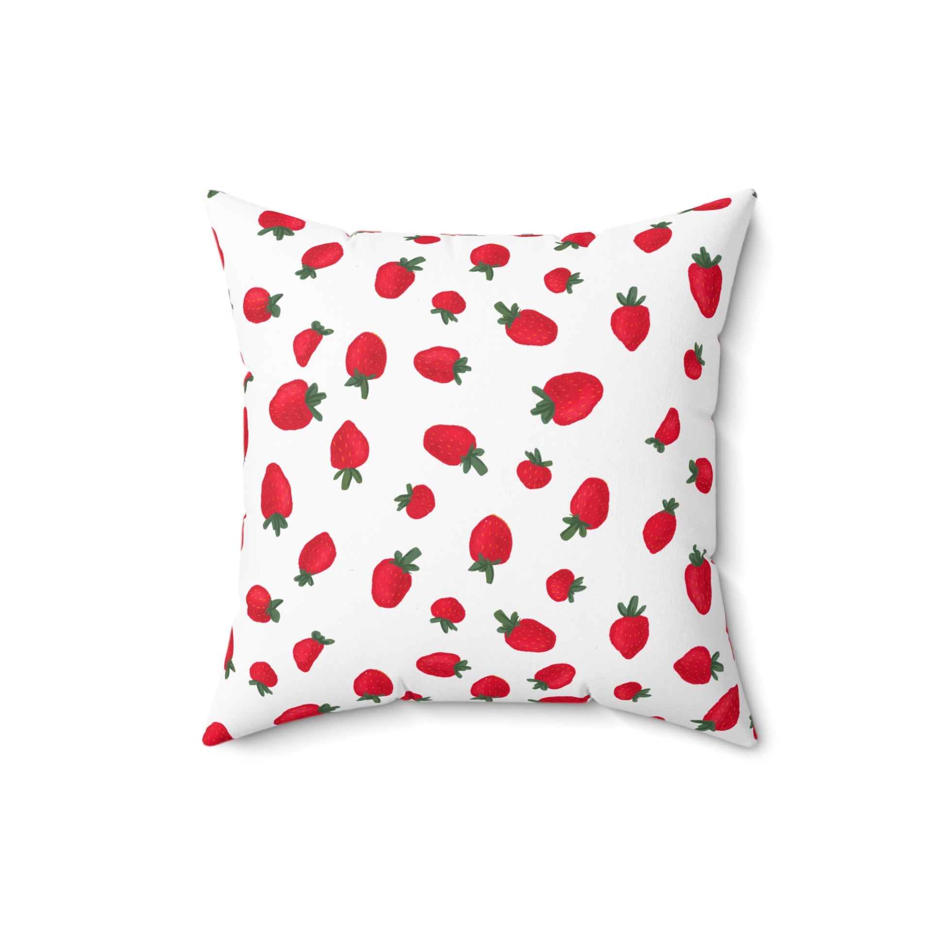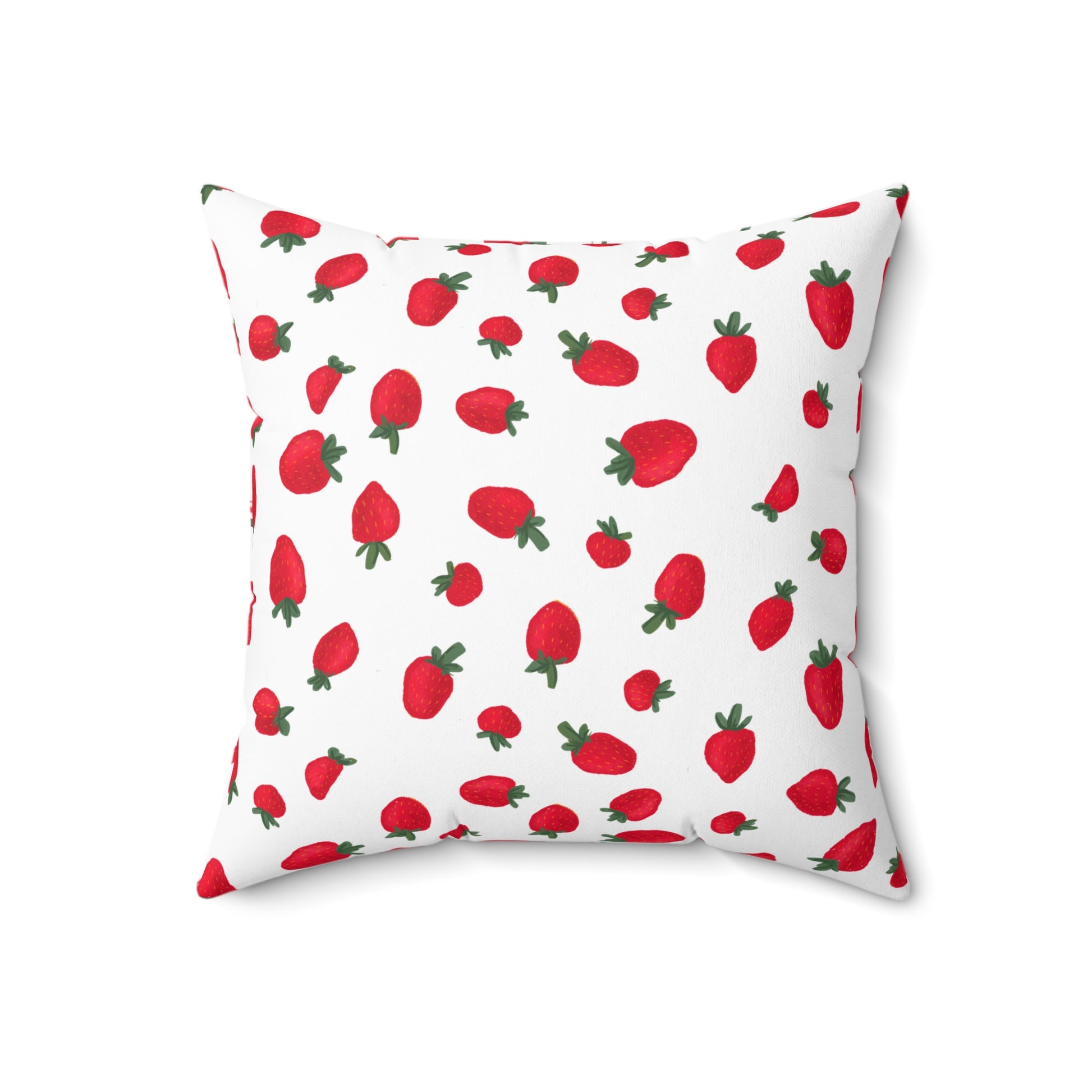 Cojín con estampado de fresas, decoración de habitación, cojín de diseño cuadrado rojo y blanco