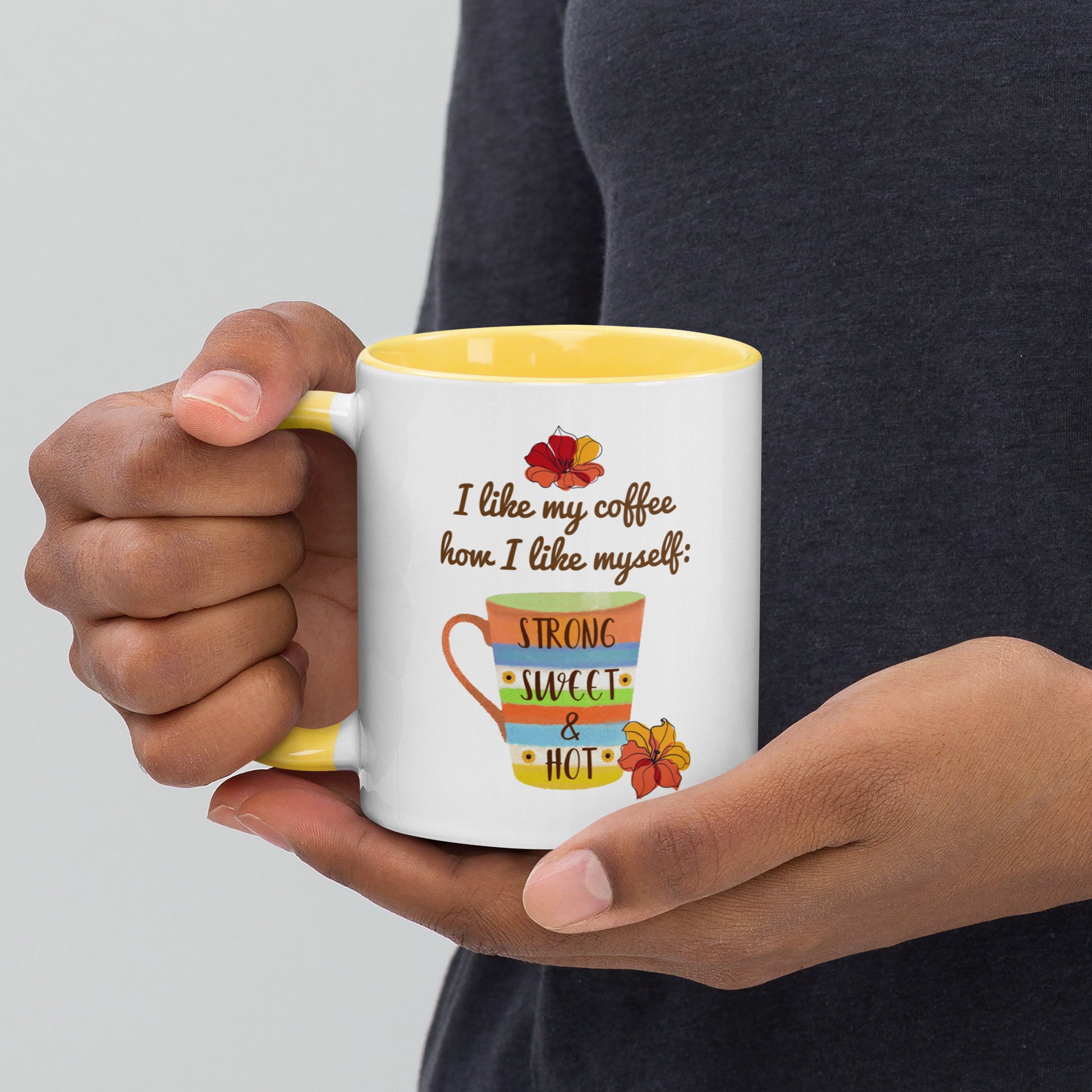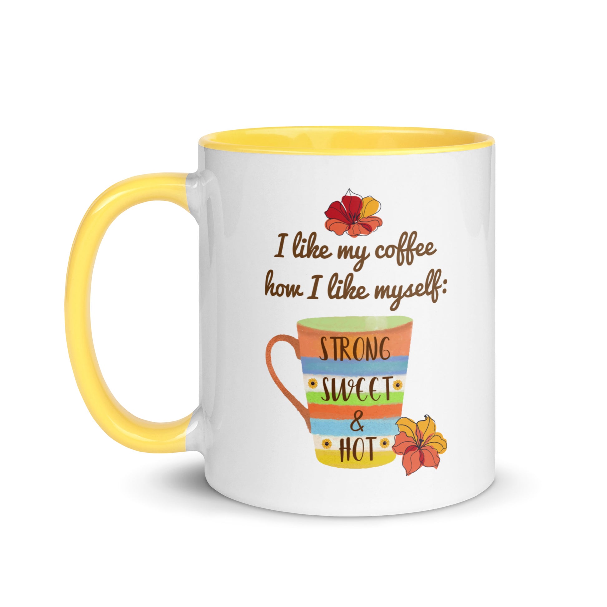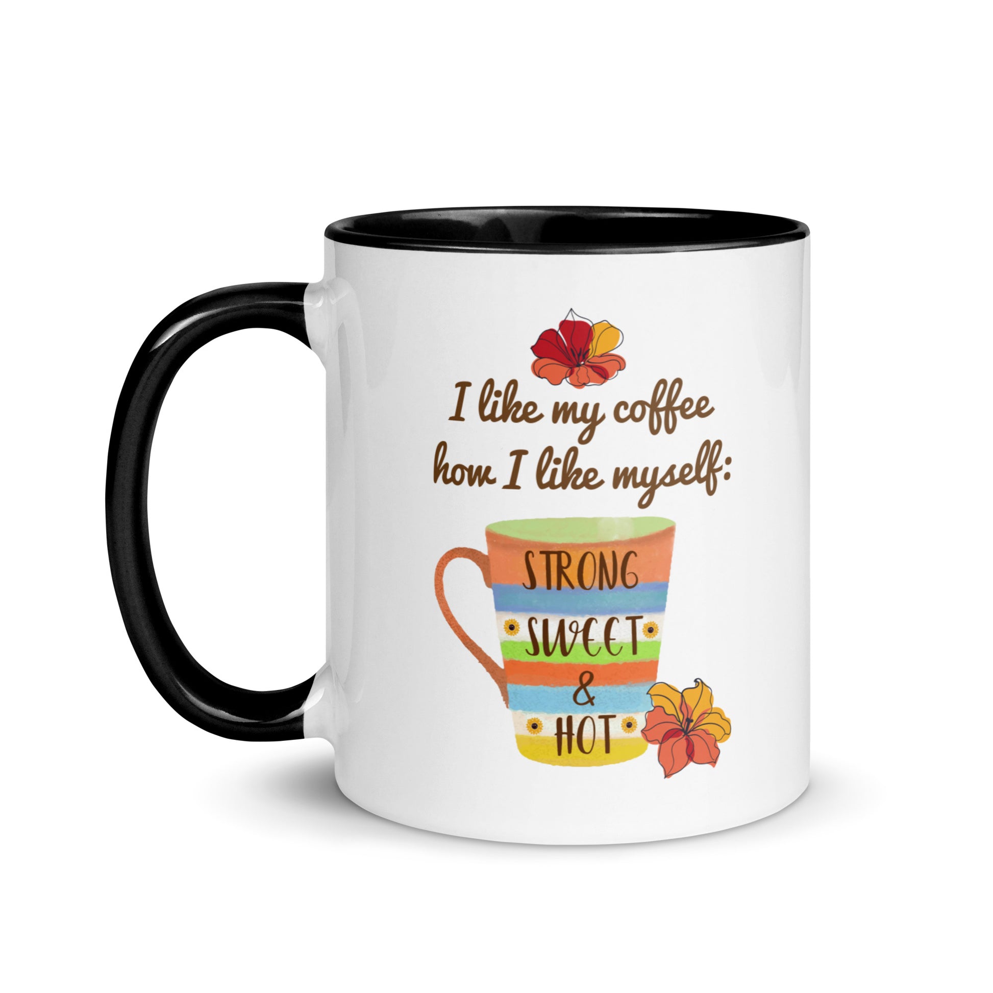 Mejora tu experiencia de café o té matutino con nuestra taza de café "Strong, Sweet & Hot: Coffee Lover's Delight". Esta taza, con un mensaje divertido impreso, encarna la esencia de una infusión perfecta: fuerte, dulce y muy caliente. Con su diseño llamativo, que incluye un borde, un asa y un interior vibrantes, no es solo una taza; es una expresión de tu amor por una gran taza de café. Prepárate para disfrutar de cada sorbo de tu bebida favorita con estilo y haz una declaración que refleje tu personalidad amante del café. Comienza tu día con el pie derecho con esta deliciosa taza de café o sorprende a un compañero entusiasta del café con el regalo perfecto.