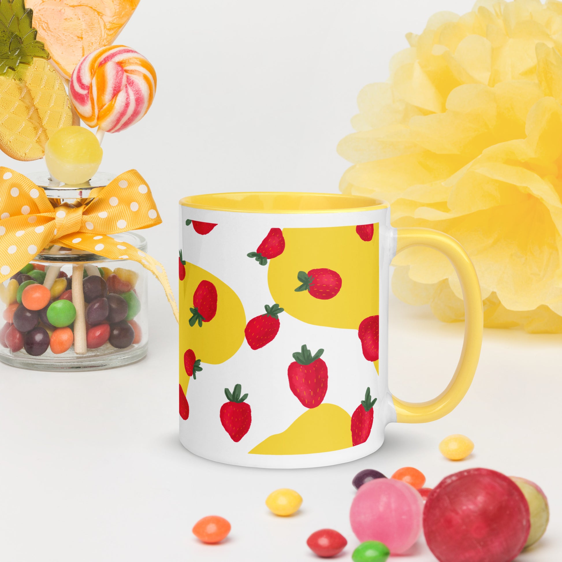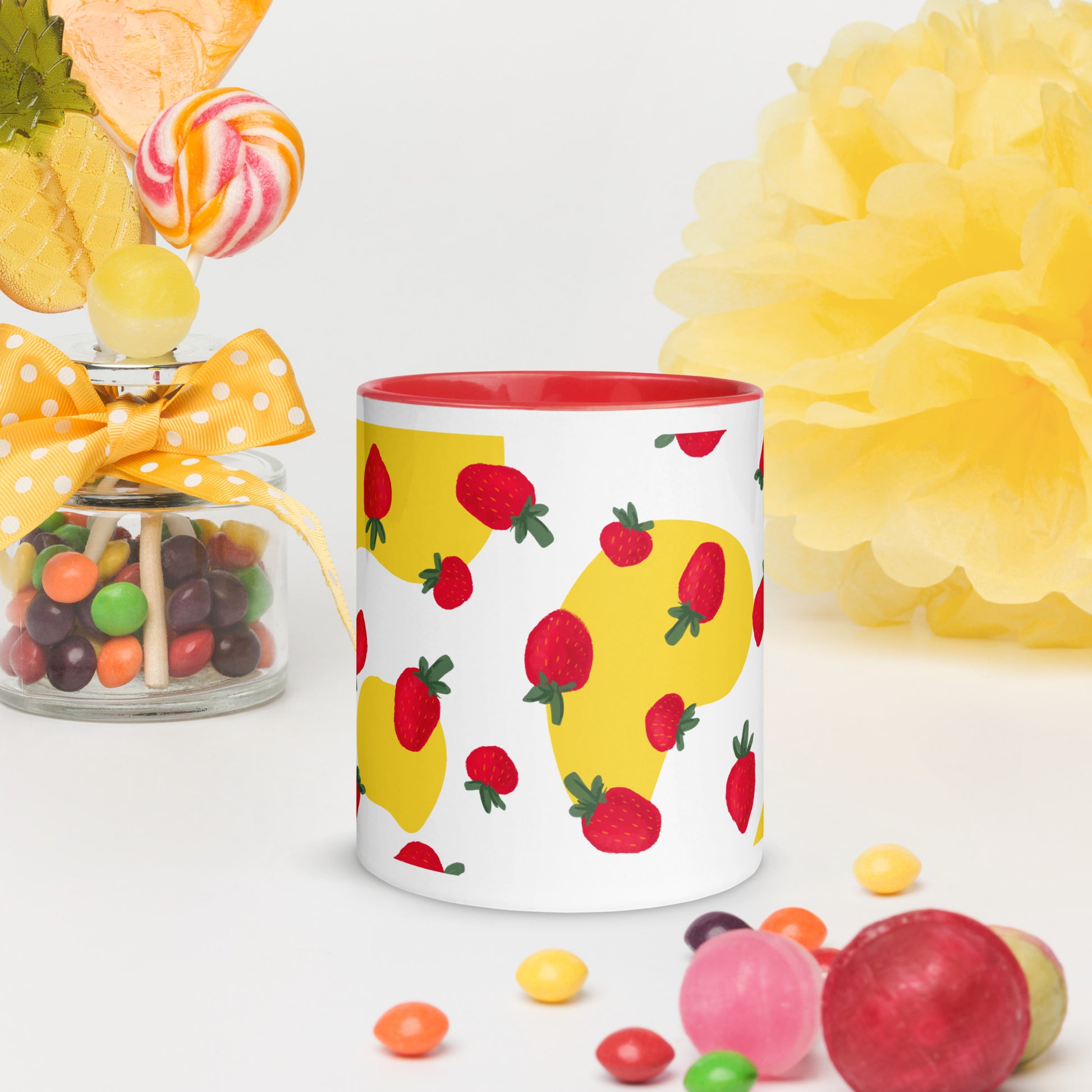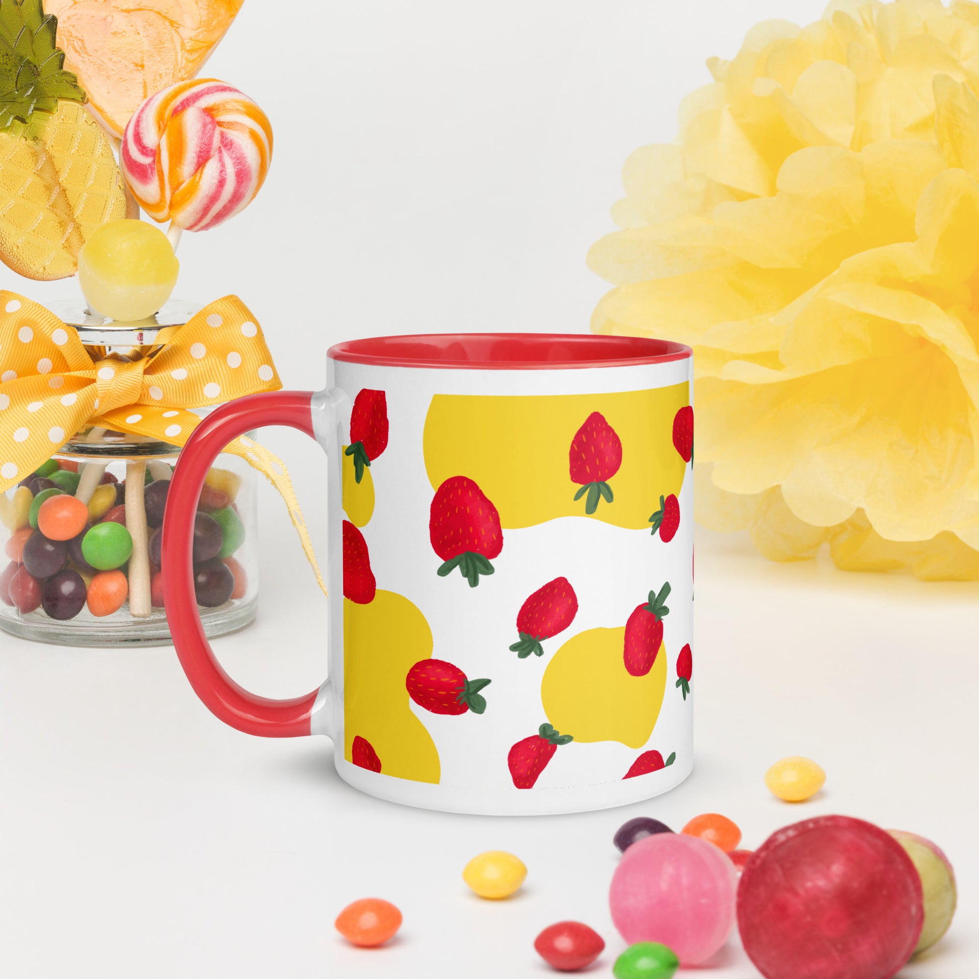 “¡Disfrute de la vibrante sinfonía de la dulce armonía de las bayas con esta taza de café! Eleve su rutina diaria de café o té con la deliciosa fusión de arte y practicidad. Nuestras tazas de cerámica cuentan con diseños cautivadores, con fresas espaciadas uniformemente que bailan alrededor de la superficie de la taza, aportando una explosión de encanto a sus mañanas. Con un toque de color en el borde, el asa y el interior, estas tazas no solo son un deleite para la vista, sino también una adición perfecta a su colección”.