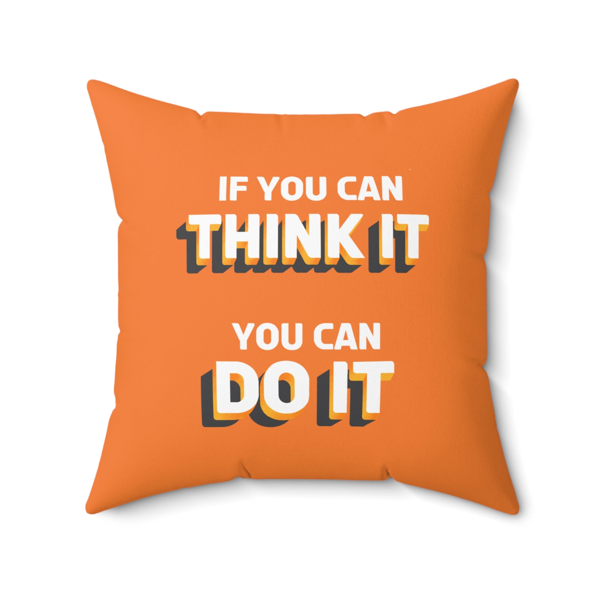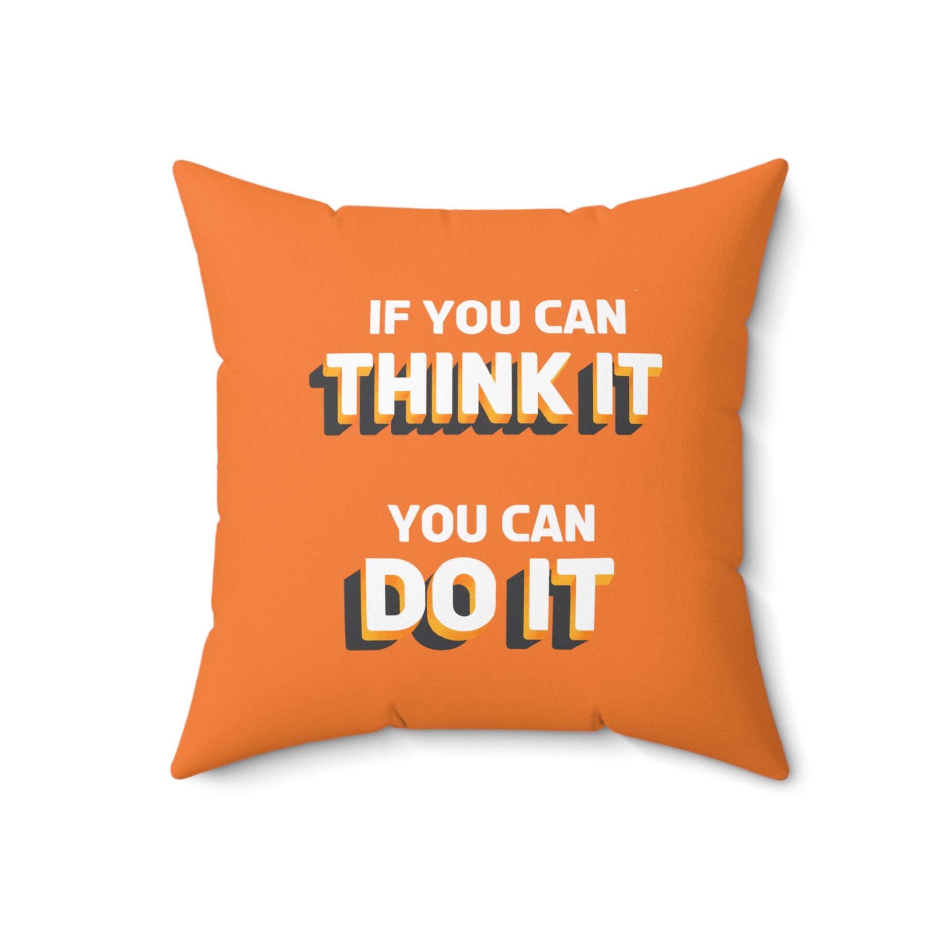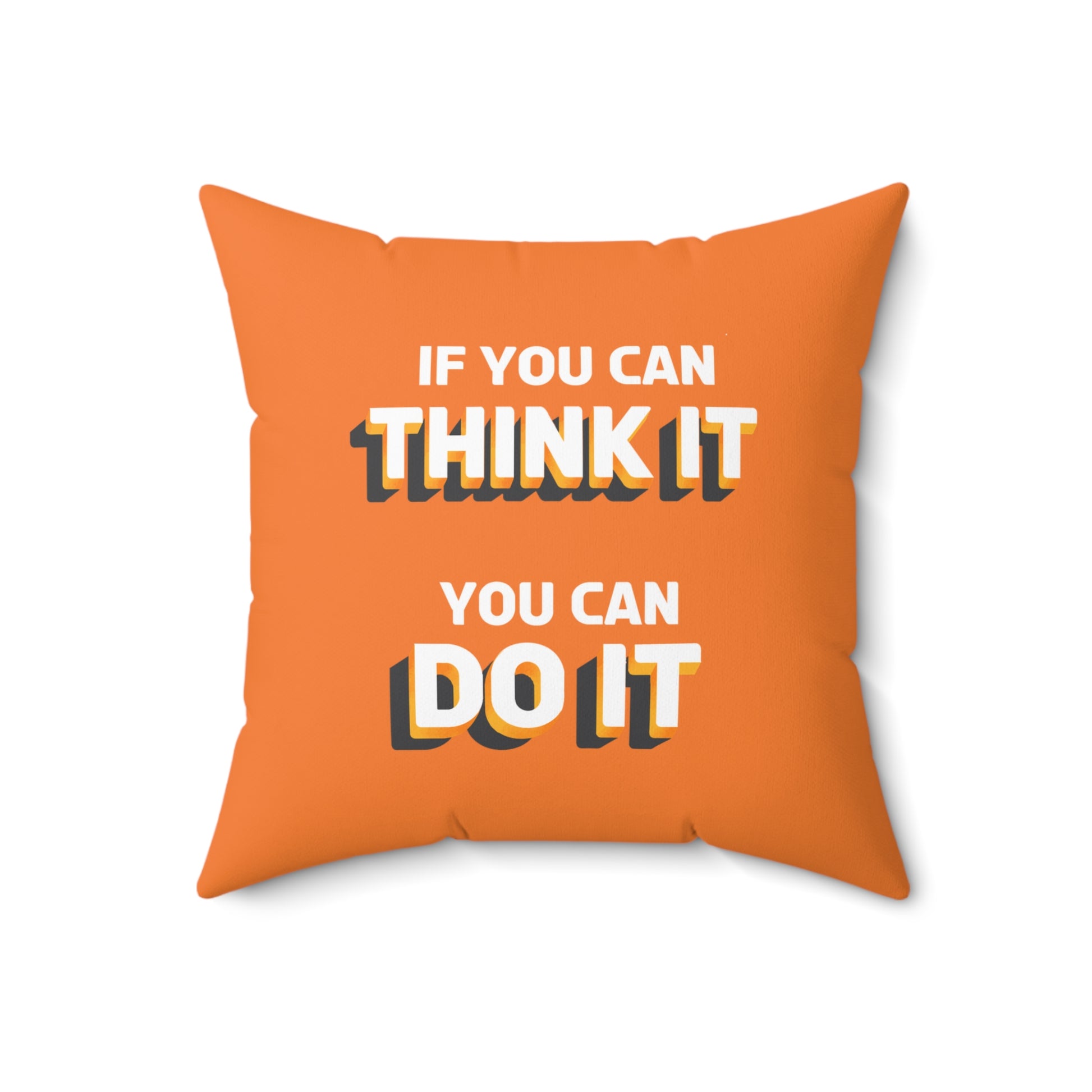 Realza tu espacio con el cojín decorativo naranja “Think It, Do It: Inspire Action”. Este cojín decorativo vibrante es más que un elemento decorativo: es una dosis diaria de motivación. Con el mensaje inspirador “If You Can Think It, You Can Do It” (Si puedes pensarlo, puedes hacerlo), impreso en blanco, sirve como un poderoso recordatorio para perseguir tus sueños y convertir tus pensamientos en acción.