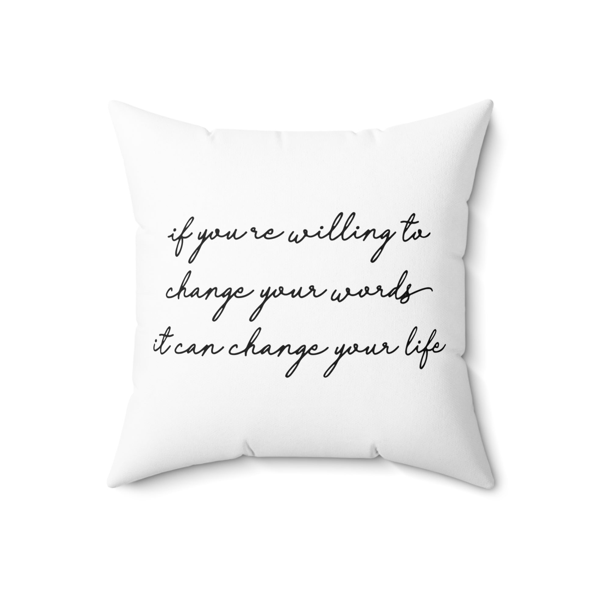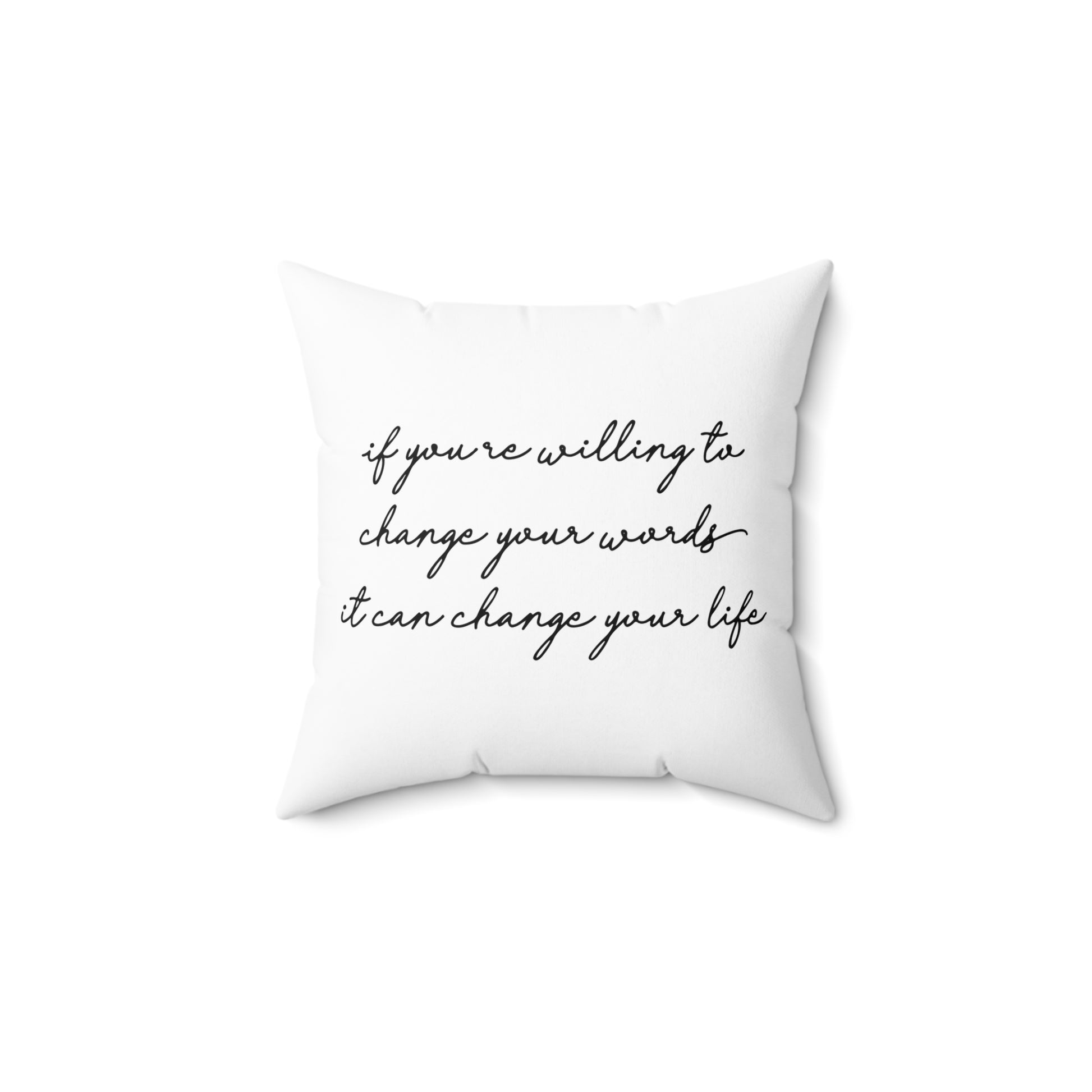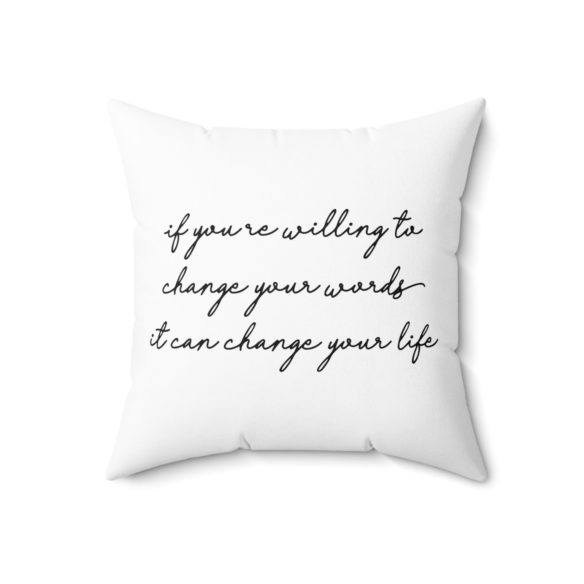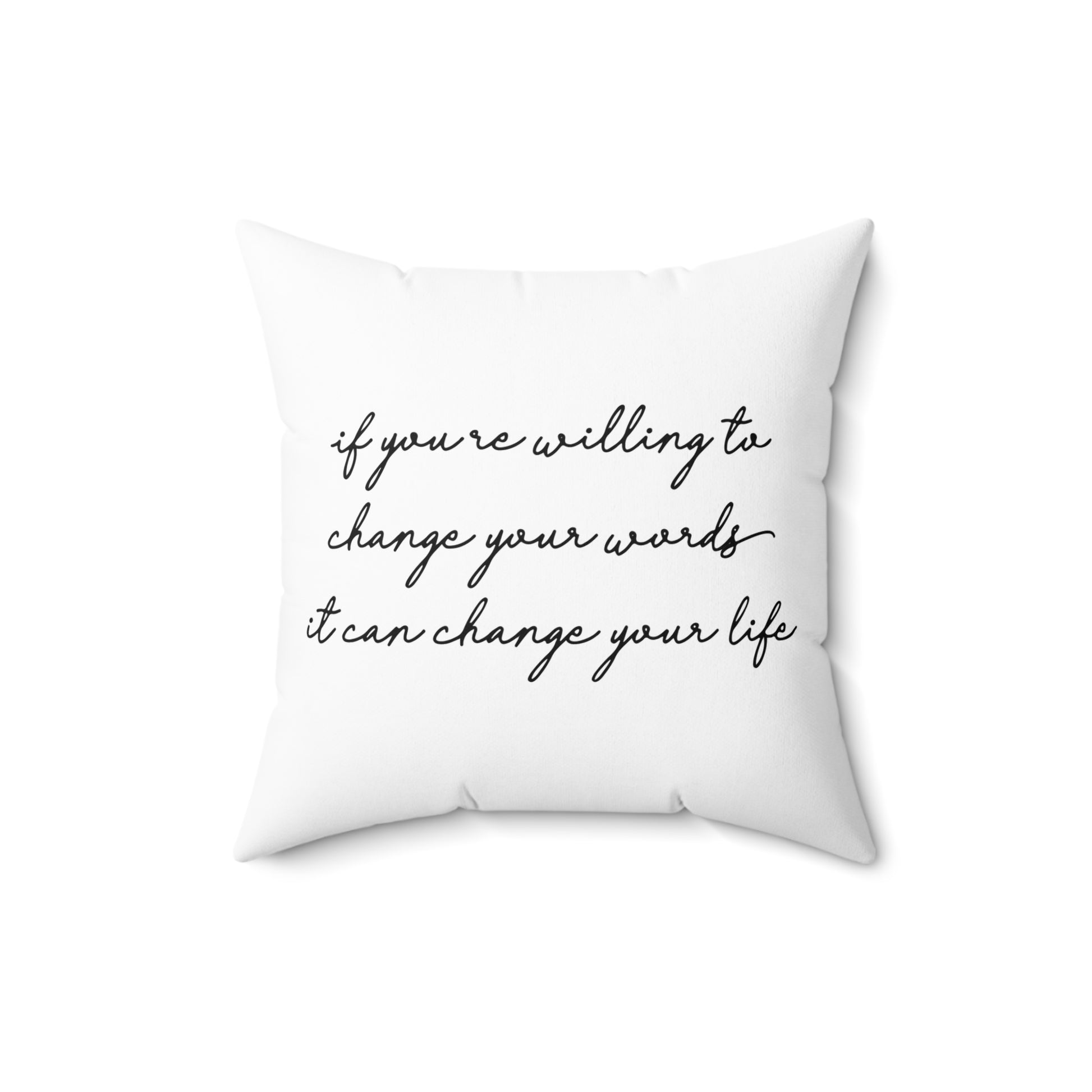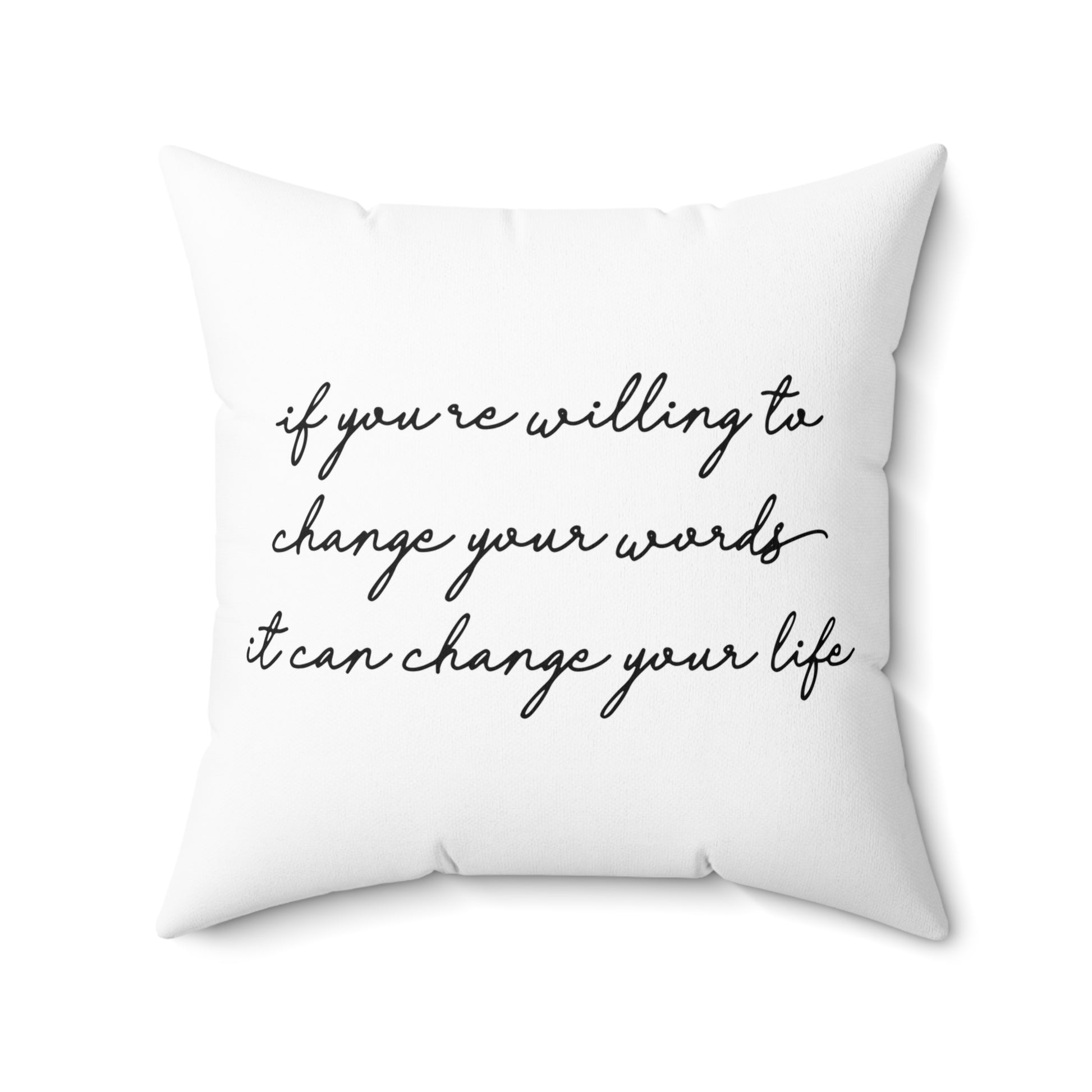 Realza tu espacio con nuestro cojín decorativo blanco “Transformative Words”. Es un recordatorio elegante del poder del lenguaje positivo, perfecto para tu sala de estar o como un obsequio considerado. Elaborado con cuidado y disponible en varios tamaños, ilumina tu espacio y tu mentalidad.