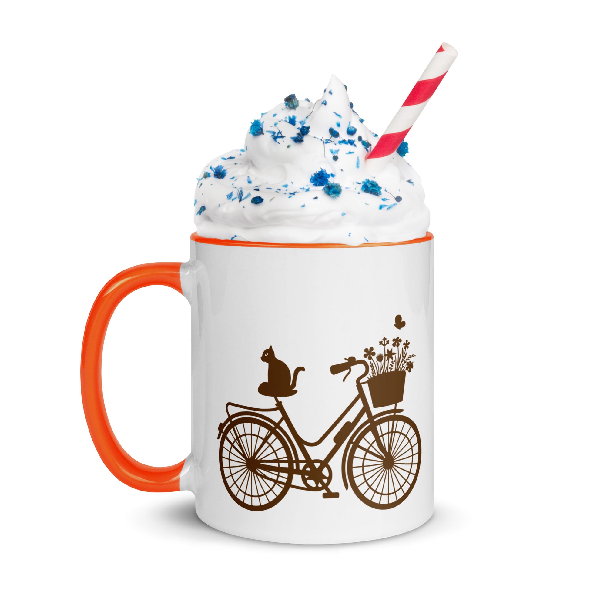 “Embárcate en un viaje de café caprichoso con nuestra taza de café 'Whimsical Bike Ride: Feline Adventure'. Esta encantadora taza de cerámica presenta una escena encantadora de una bicicleta, completa con un lindo gato posado en el asiento y una exuberante planta en la canasta. Deja que este delicioso diseño traiga alegría a tu rutina diaria de cafeína. Con su borde, asa e interior vibrantes, esta taza seguramente agregará una explosión de color a tu colección".