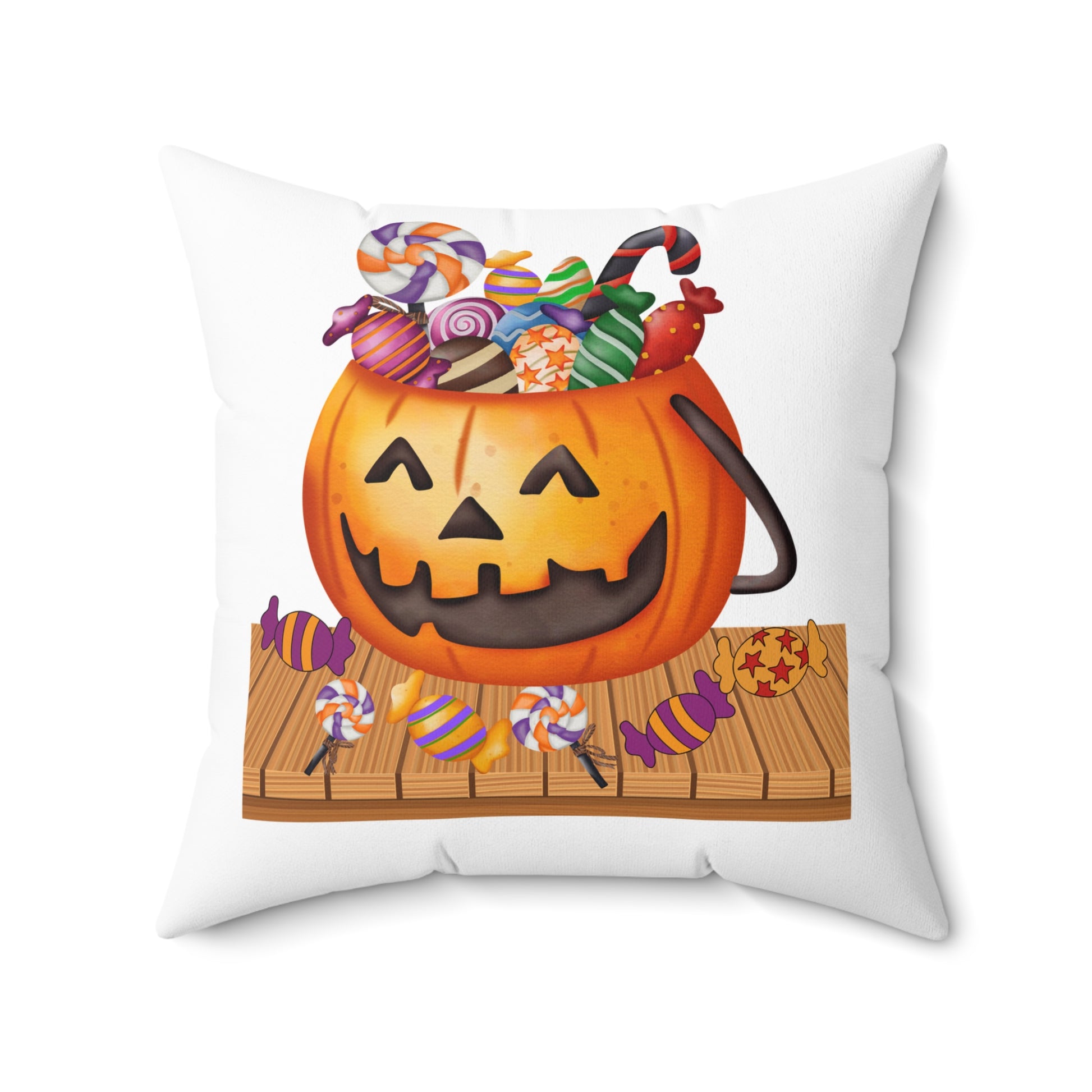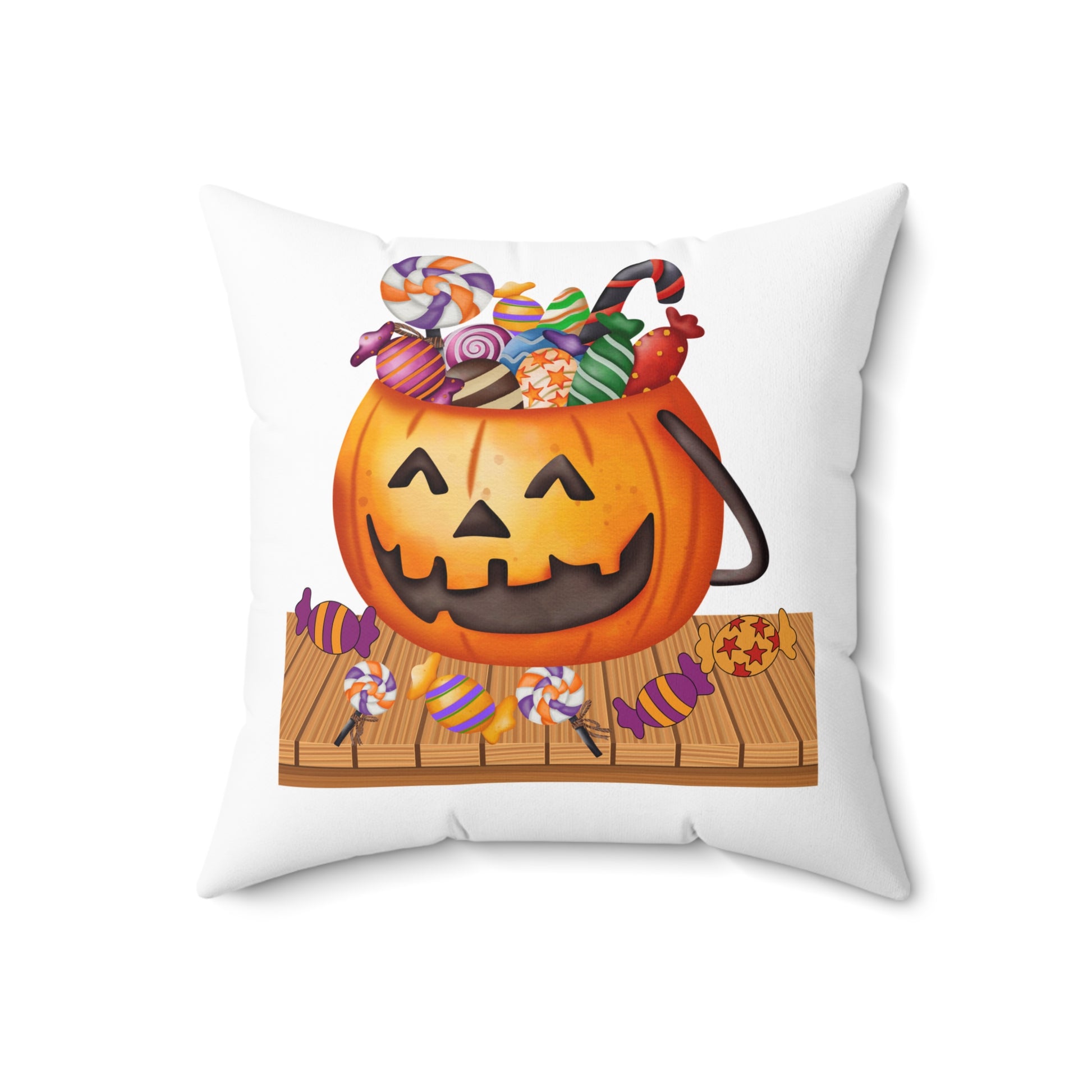 Almohada decorativa de Halloween con forma de linterna de Jack-O-Lantern y caramelos, decoración de habitación de Halloween, almohada decorativa espeluznante, almohada decorativa de 18 x 18