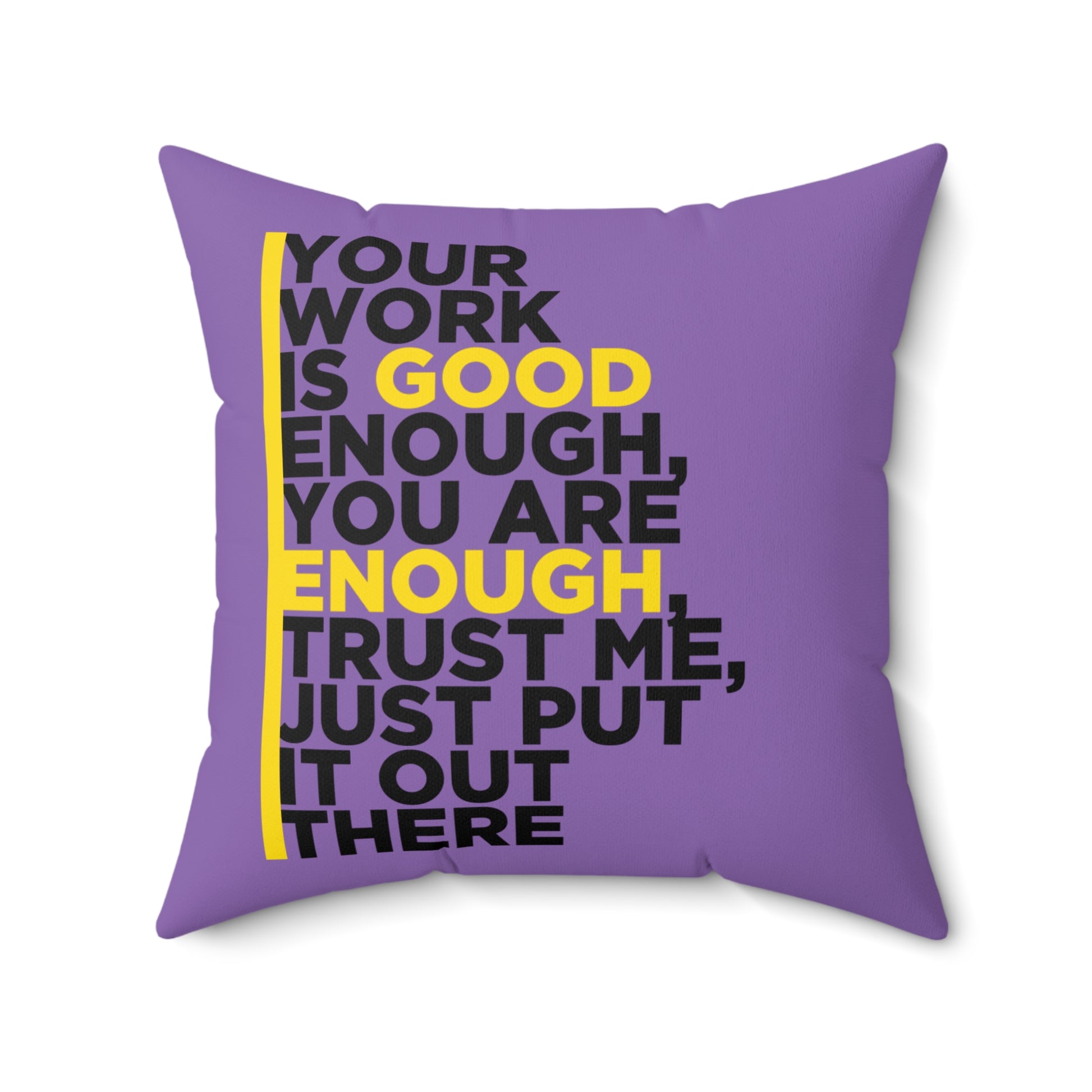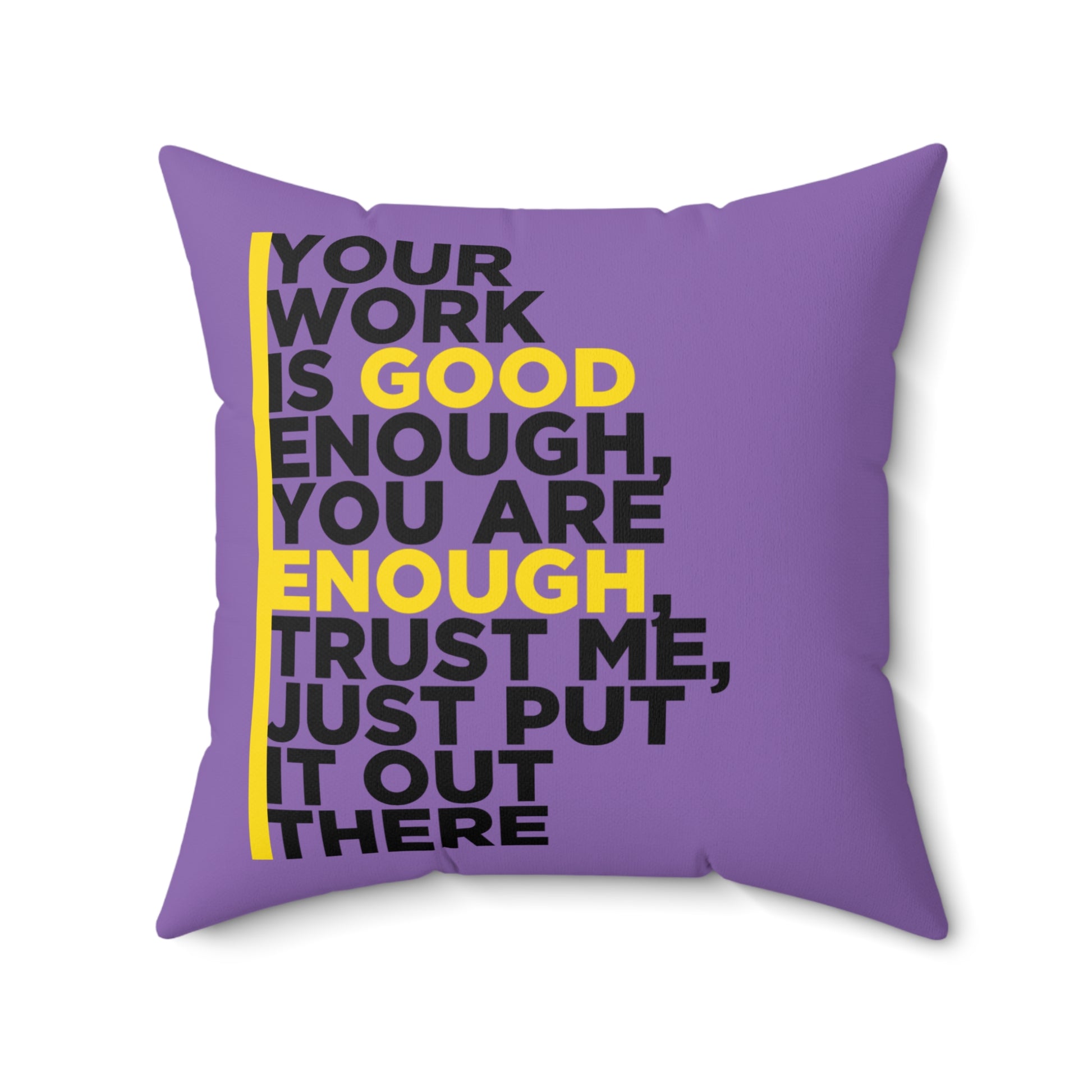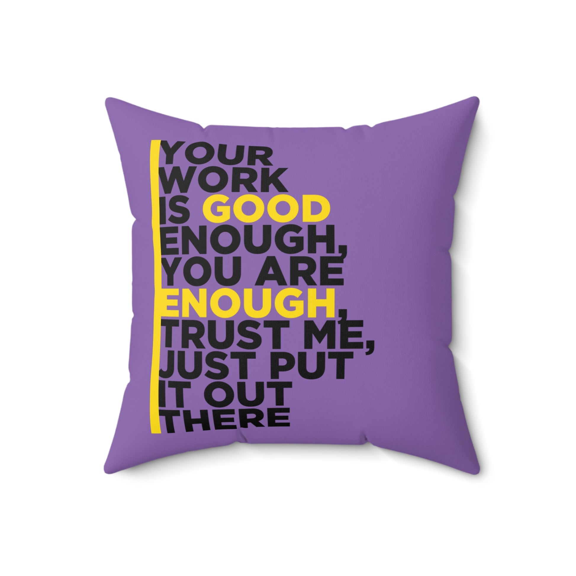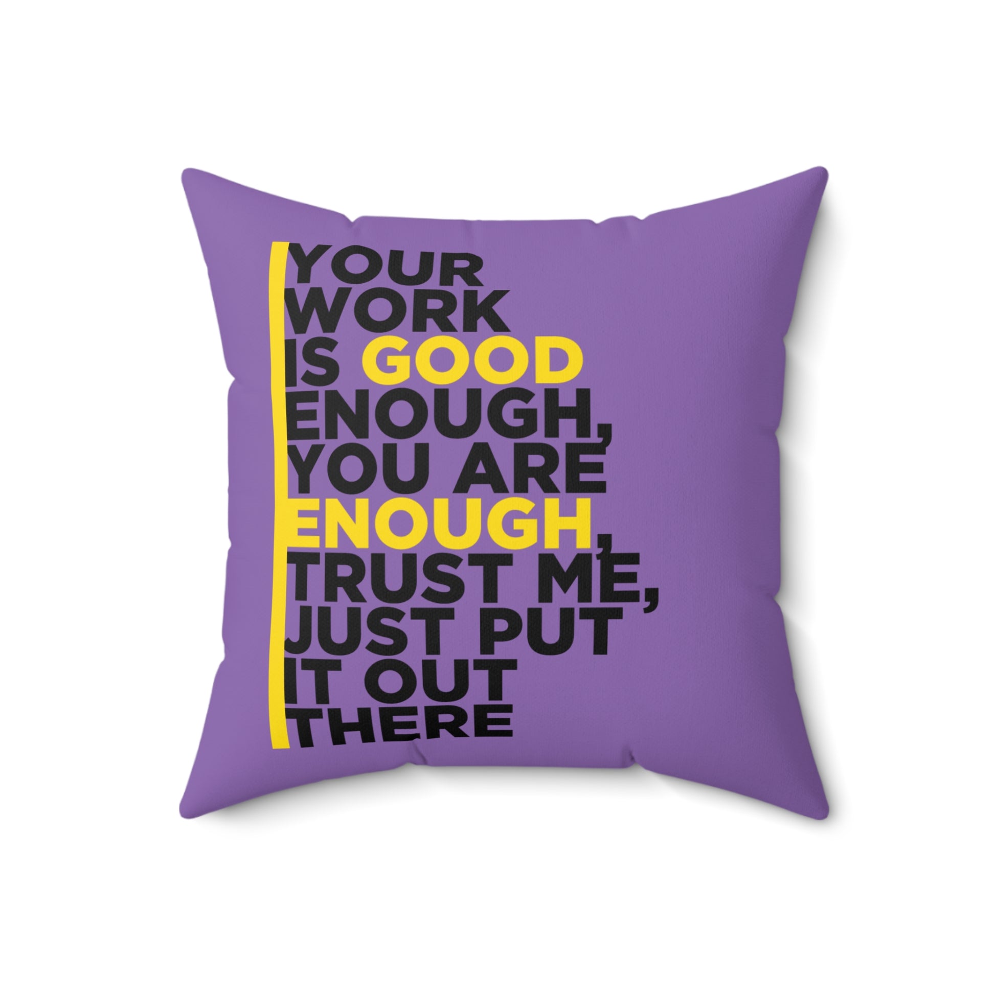 Tu trabajo es lo suficientemente bueno, almohada de motivación personal, decoración de habitación morada, regalo de afirmación diaria, las mejores ideas de regalo para amigos o familiares