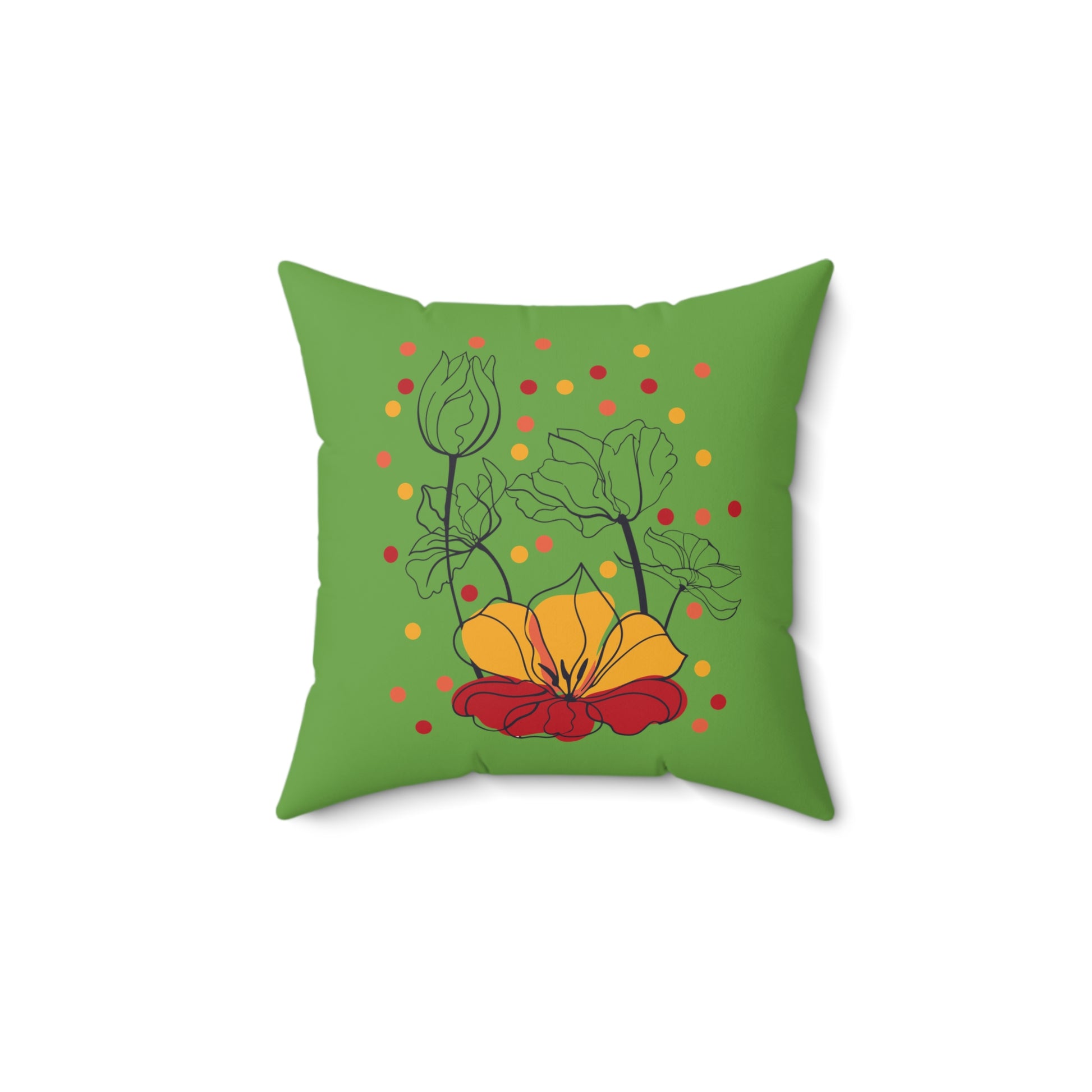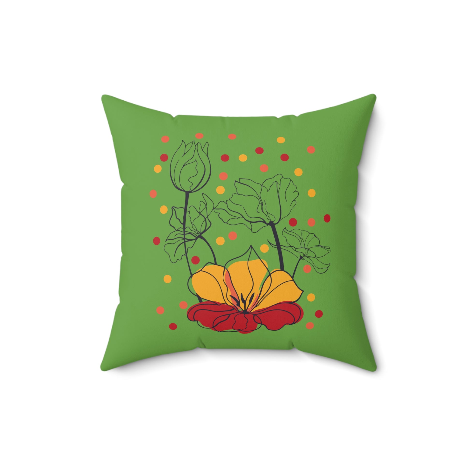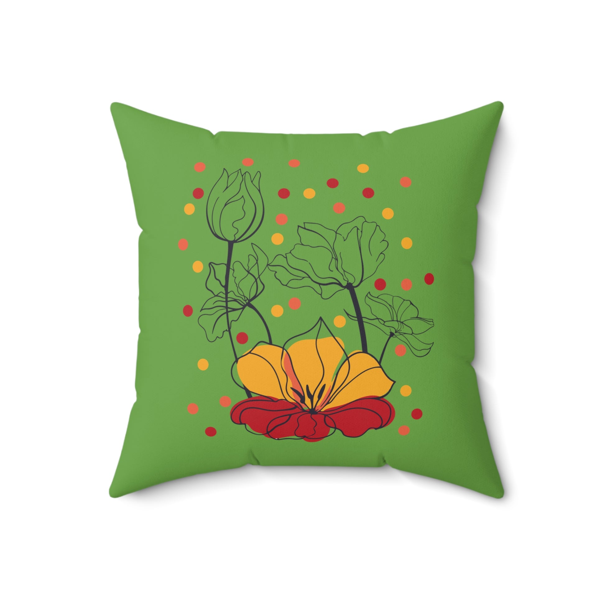 Floral Designer Throw Pillow, 14x14 Inch Room Decor, Green Pillow For Couch, Indoor Pillow Decor, Decorative Accent Pillow, Cute Pillow
